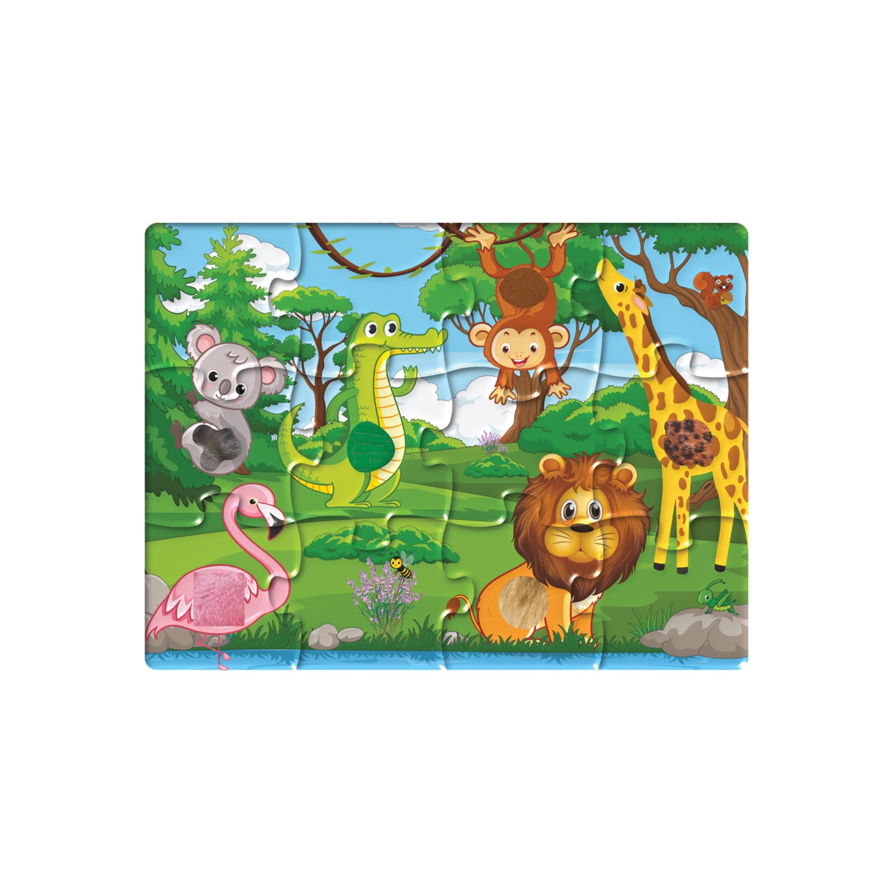 12 parçalık Dokun Hisset Puzzle, 1 yaş ve üzeri çocukların ince motor becerilerini, dokunma duyusunu ve duyusal algılarını geliştirirken orman hayvanlarını eğlenceli bir şekilde tanımalarını sağlar.