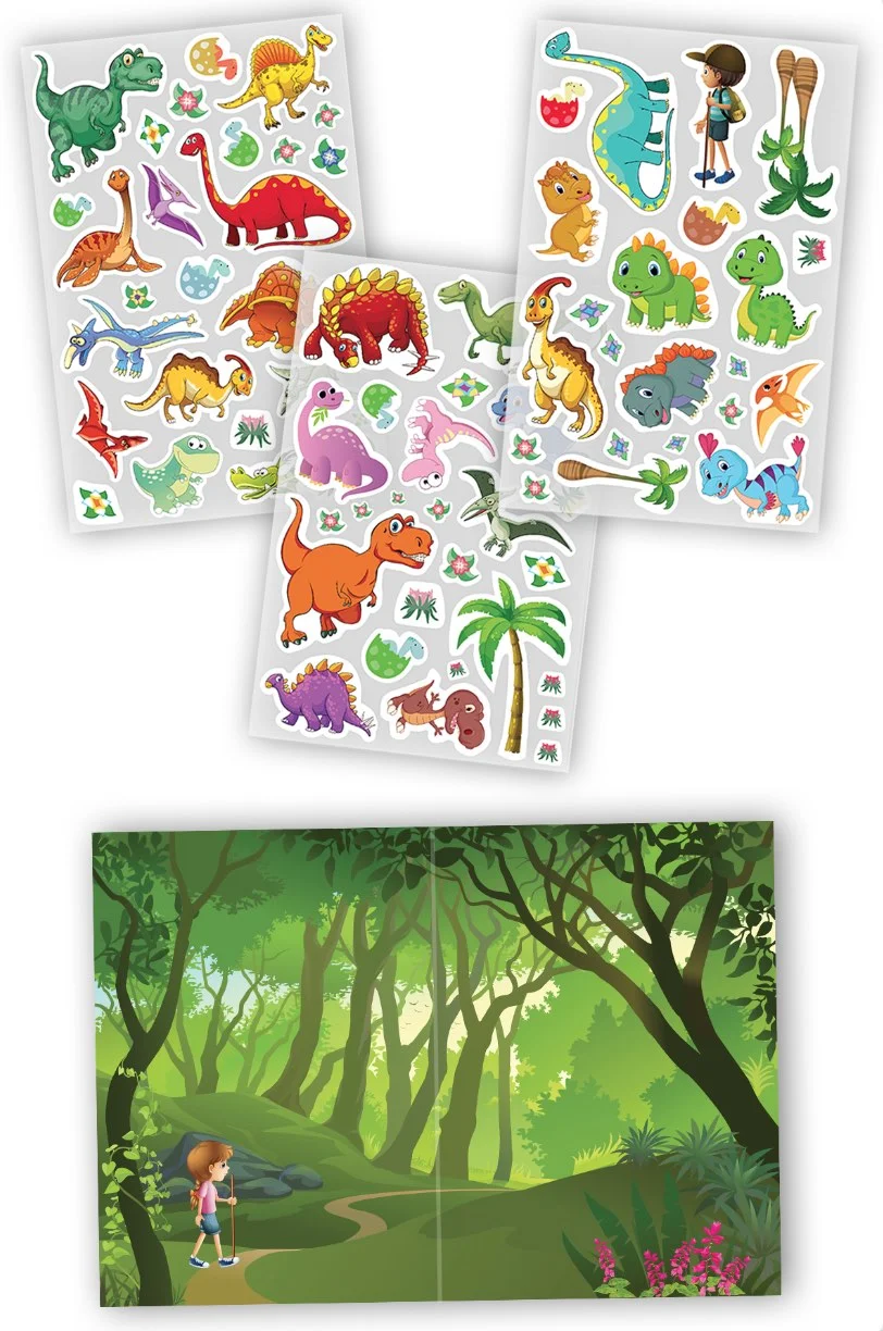 Dinozorlar sticker kitap seti, çocukların hayal gücünü geliştirirken eğlenceli ve görsel açıdan zengin bir öğrenme deneyimi sunar.