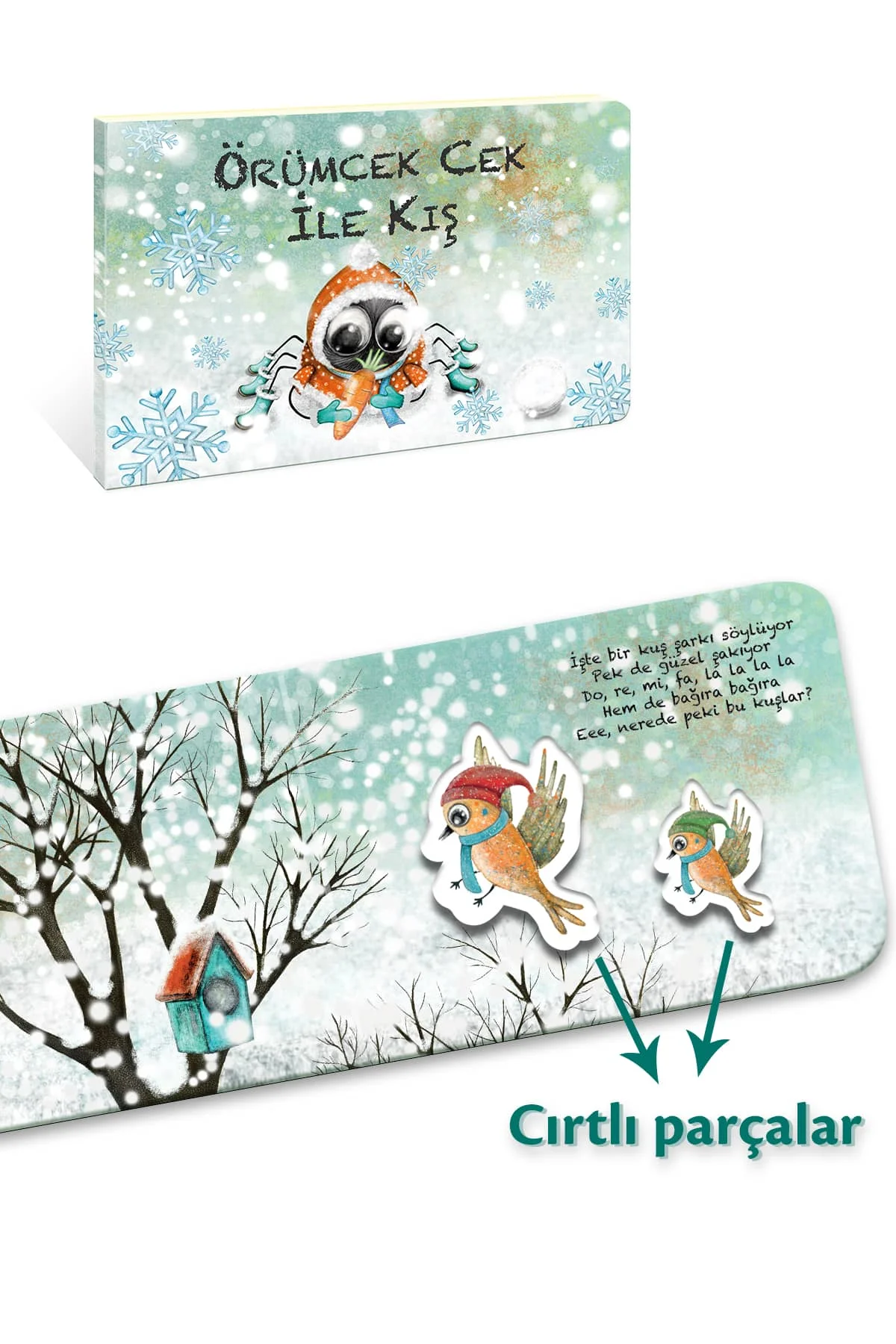 Örümcek Cek Kış temalı Cırt Cırtlı Hikaye Kitabı, 7 farklı cırt figür ile çocukların hayal dünyasını zenginleştirirken Kış mevsimini eğlenceli ve interaktif bir şekilde keşfetmelerini sağlar.