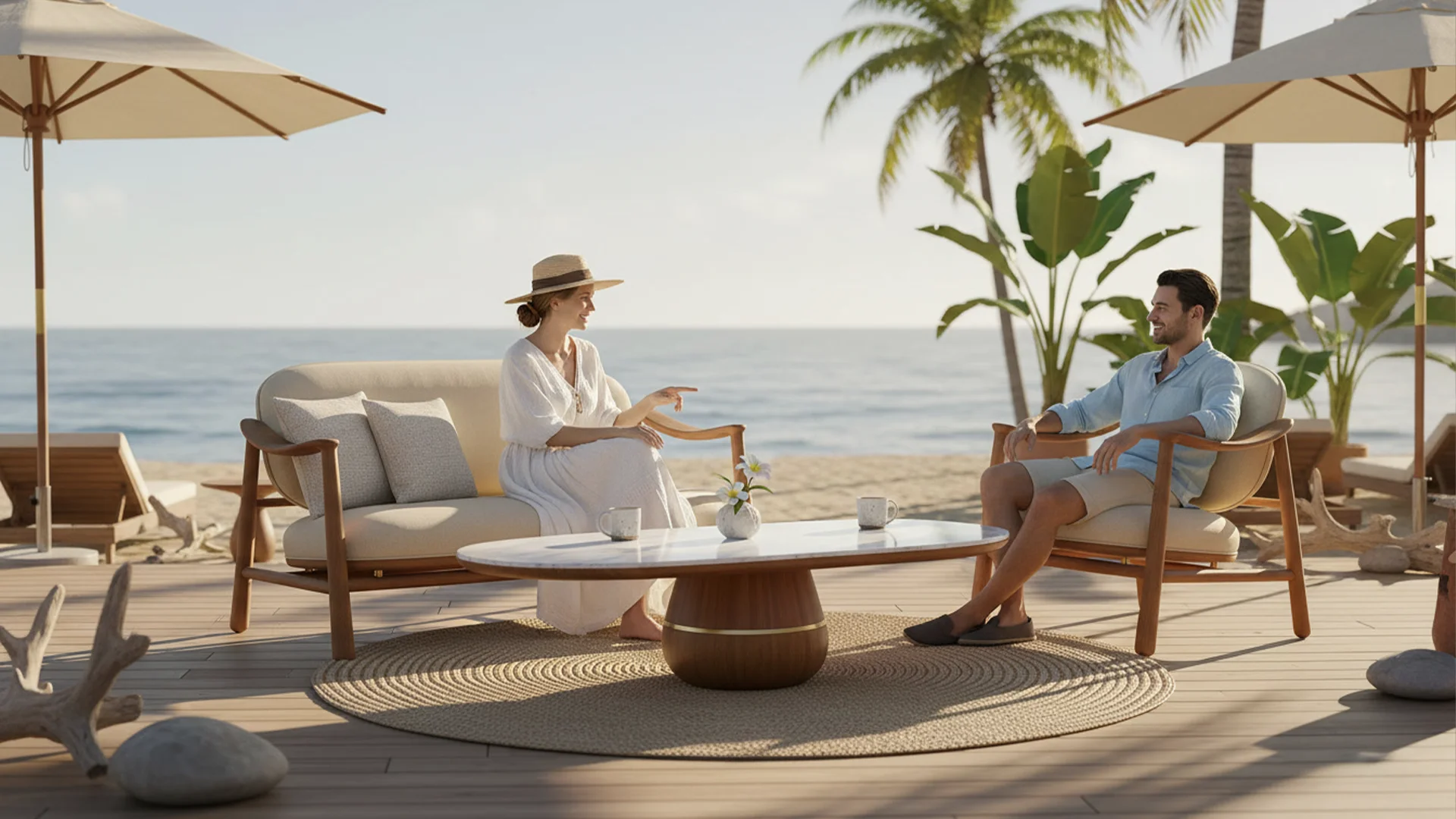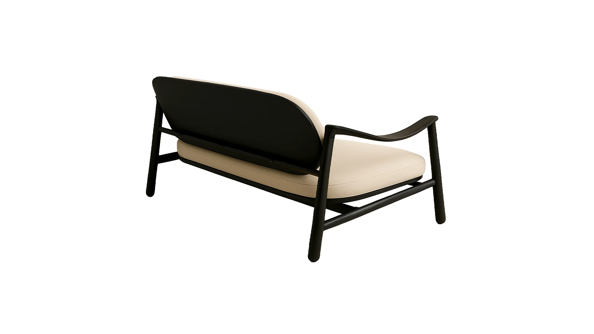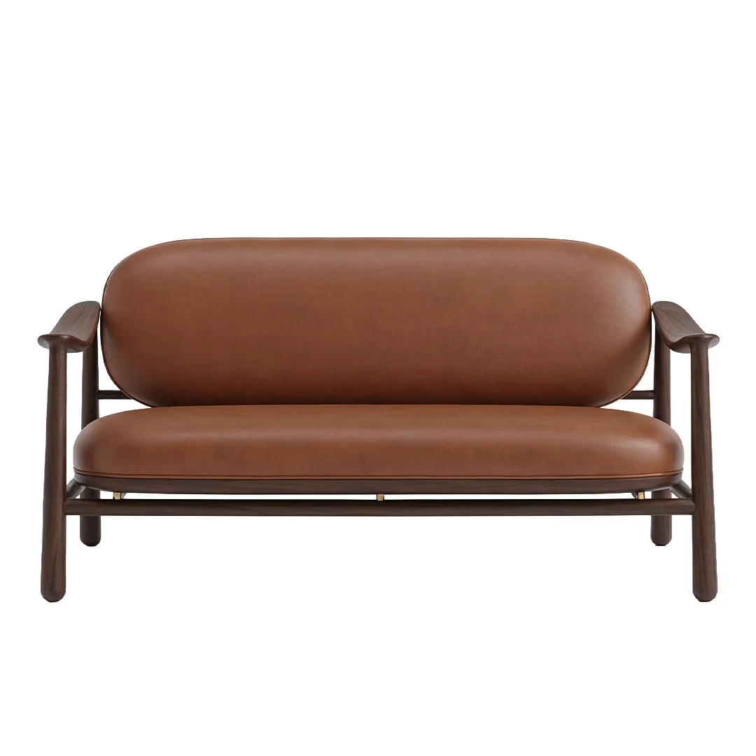 This outdoor sofa is expertly crafted from premium solid teak, chosen for its exceptional durability and natural resistance to the elements. Its softly curved frame and smooth, organic lines create a warm, inviting presence that blends seamlessly into any terrace, garden or poolside setting.