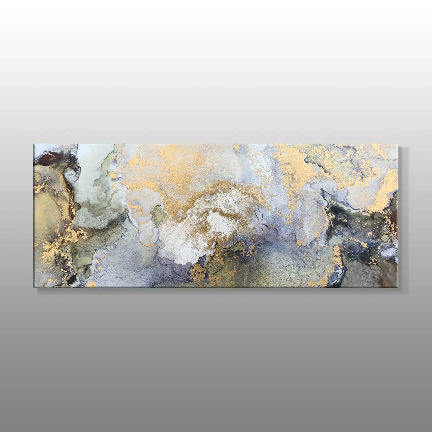 Altın-Beyaz Dalgalar Soyut Kanvas Baskı Tablo