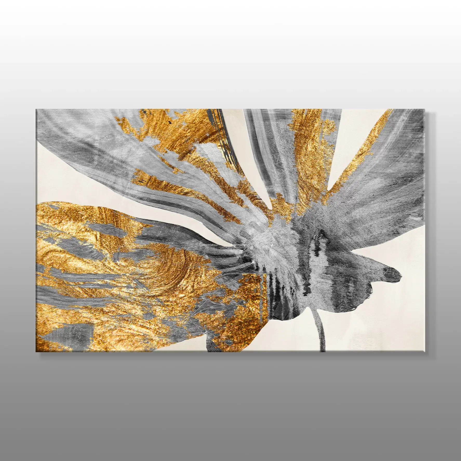 Altın Detaylı Çiçek Soyut Kanvas Baskı Tablo