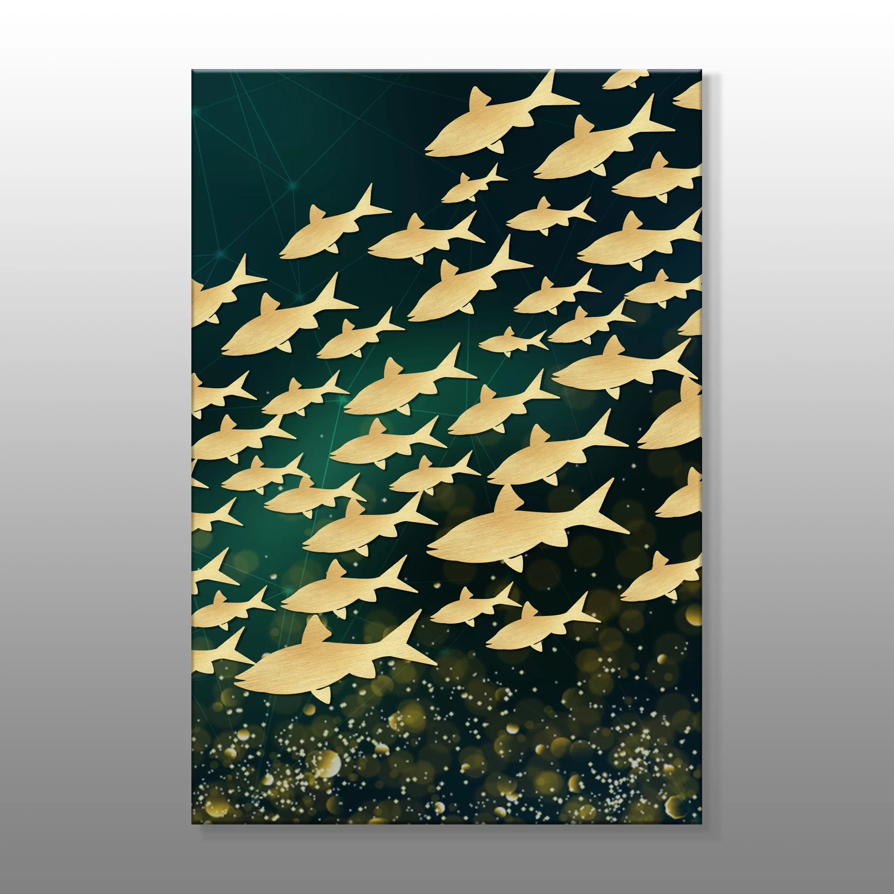 Altın Işıltılı Su Ve Balıklar Soyut Kanvas Baskı Tablo