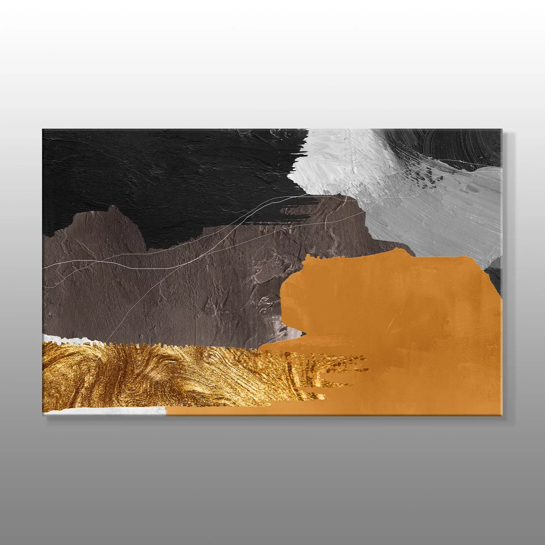 Altın-Sarı-Siyah Fırça Darbeleri Soyut Kanvas Baskı Tablo