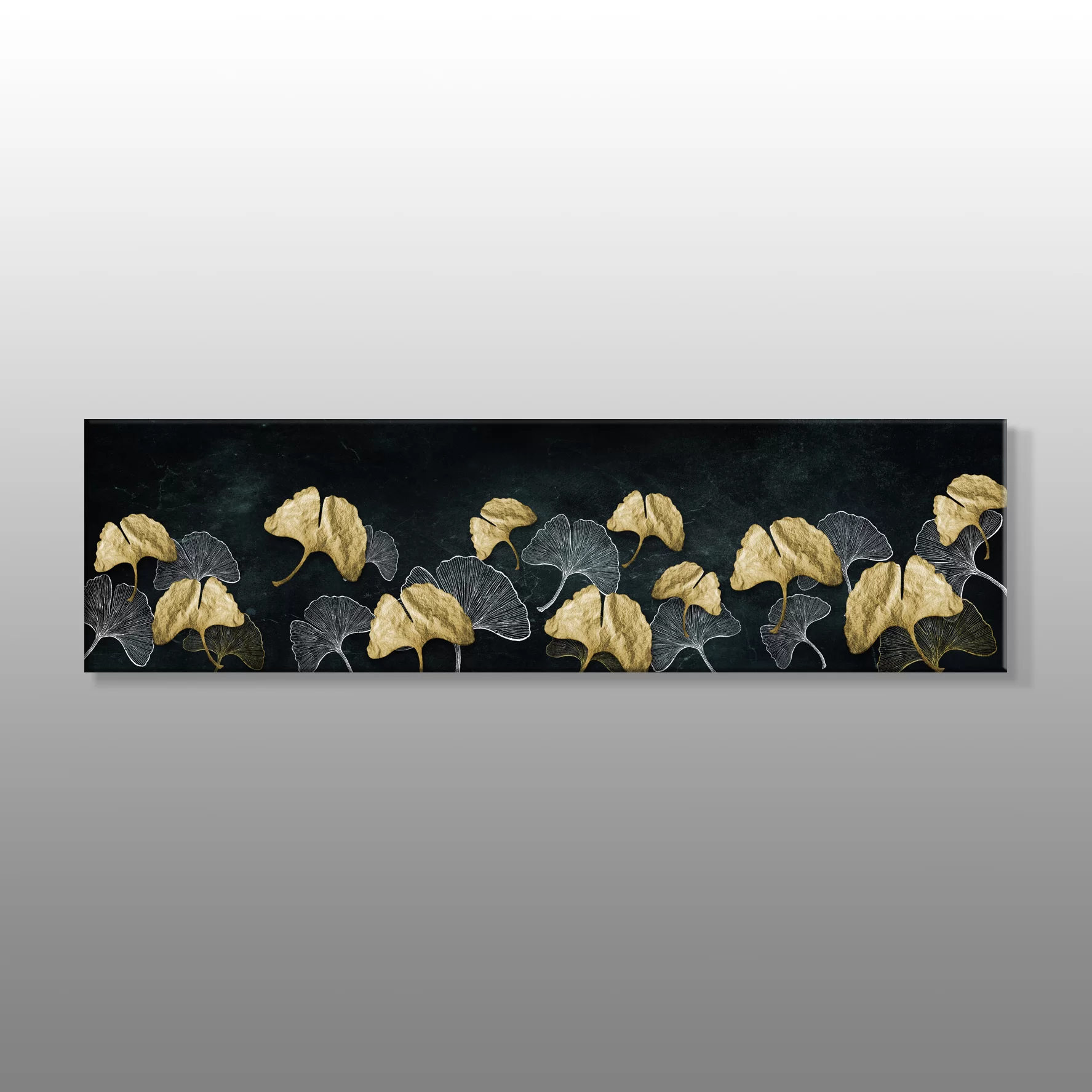 Altın Ve Gri Yapraklar Soyut Kanvas Baskı Tablo