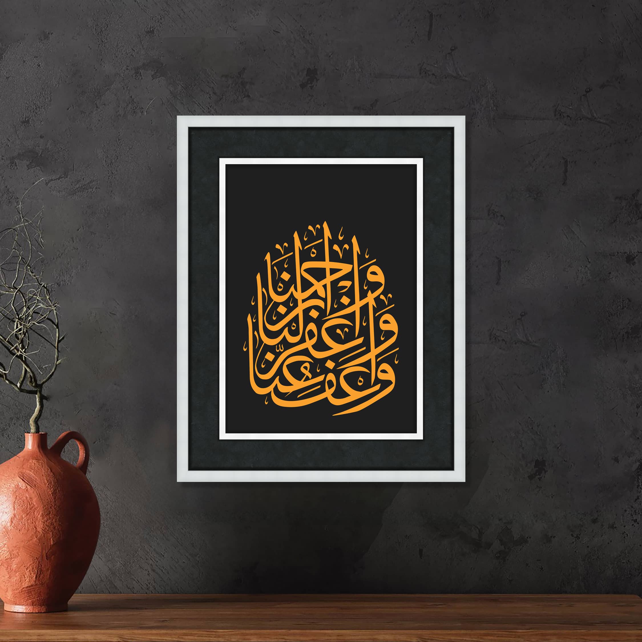 Eserin Anlamı : (Ey Rabbimiz) Bizi Affet!Bizi Bağışla! Bize Acı! Anlamına gelmektedir. Çerçeve , Lamine Çerçeveden üretilmiştir. Çift katmanlı çerçeve kırık beyaz renginde, derinlikli çeçreve kullanılmıştır, Baskı, Hahnemühle, Stüdio Enhenced 190 gr /m² Kağıt Kullanılmıştır. Paspartu; 6 cm Siyah İthal 17 micron kağıt kullanılmıştır. Cam, 2 mm Normal Cam Kullanılmıştır.