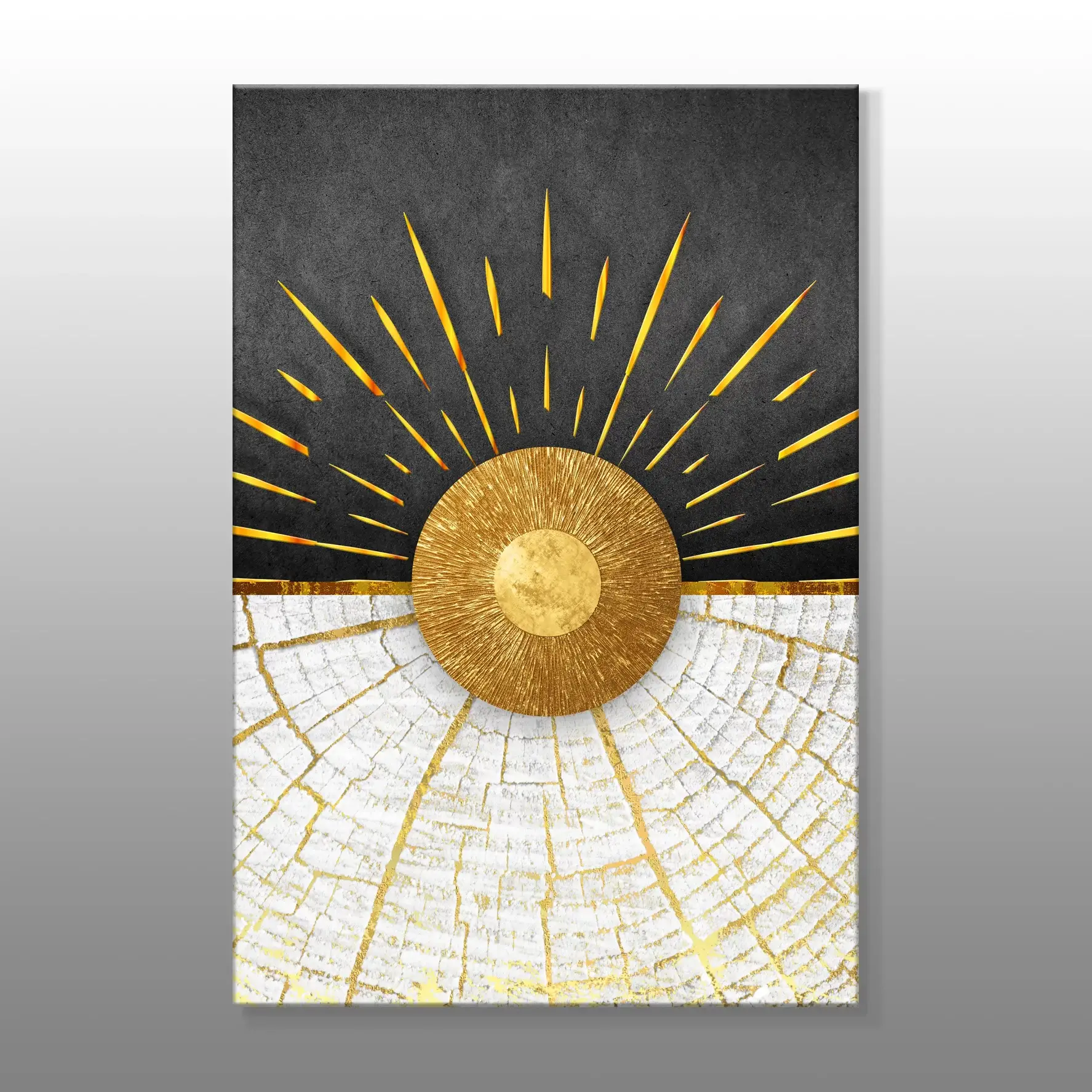 Beyaz Ahşap Doku Üstünde Altın Detaylar Soyut Kanvas Baskı Tablo