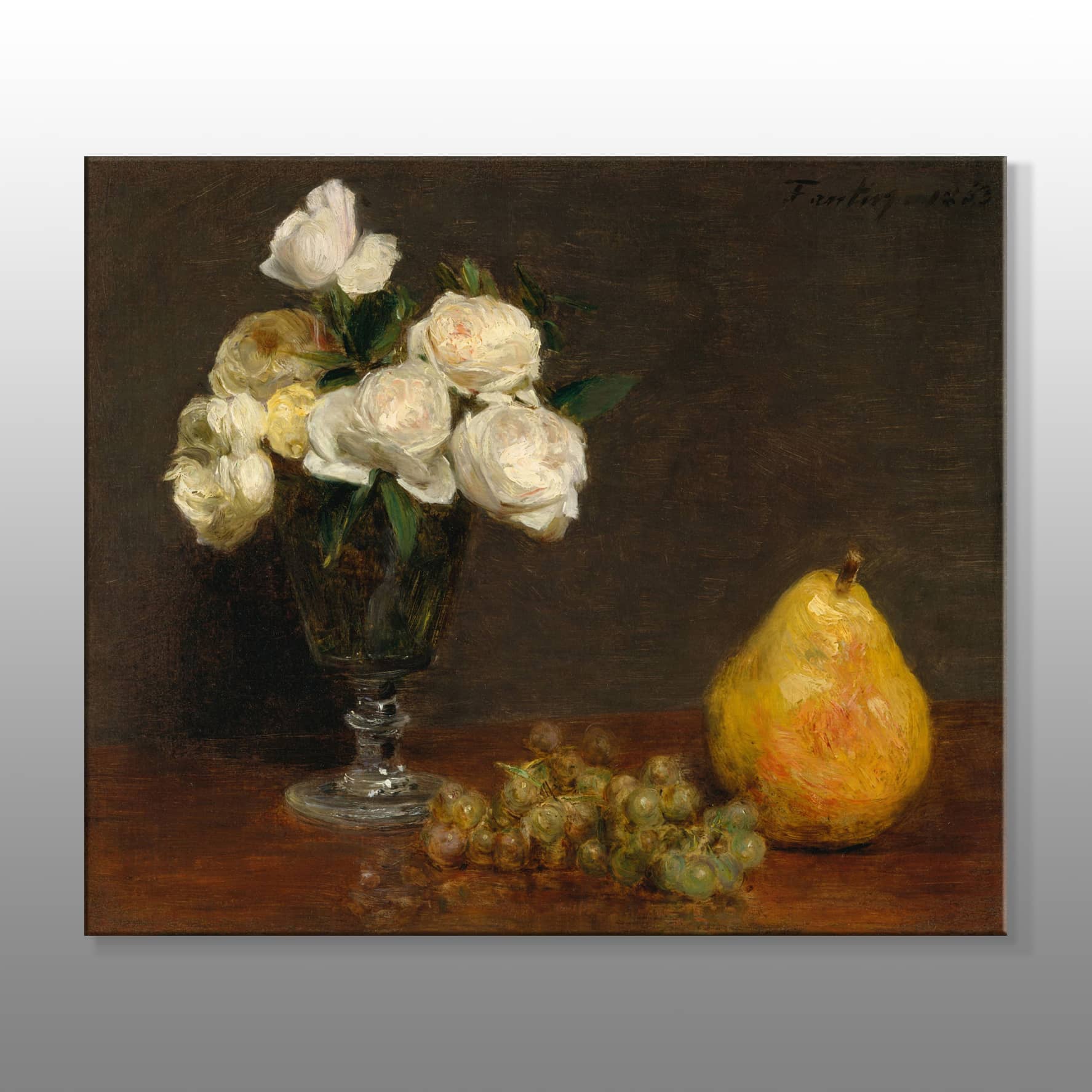 Beyaz Güller Ve Meyveler Kanvas Baskı Tablo