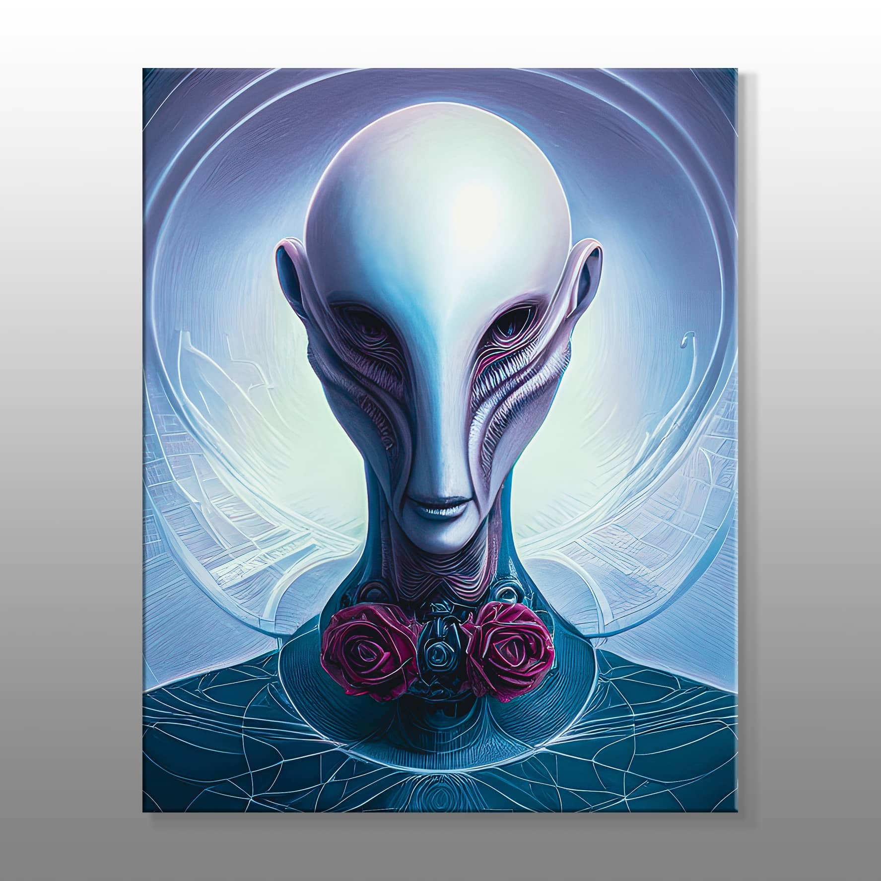 Beyaz Renkli Uzaylı Kanvas Baskı Tablo