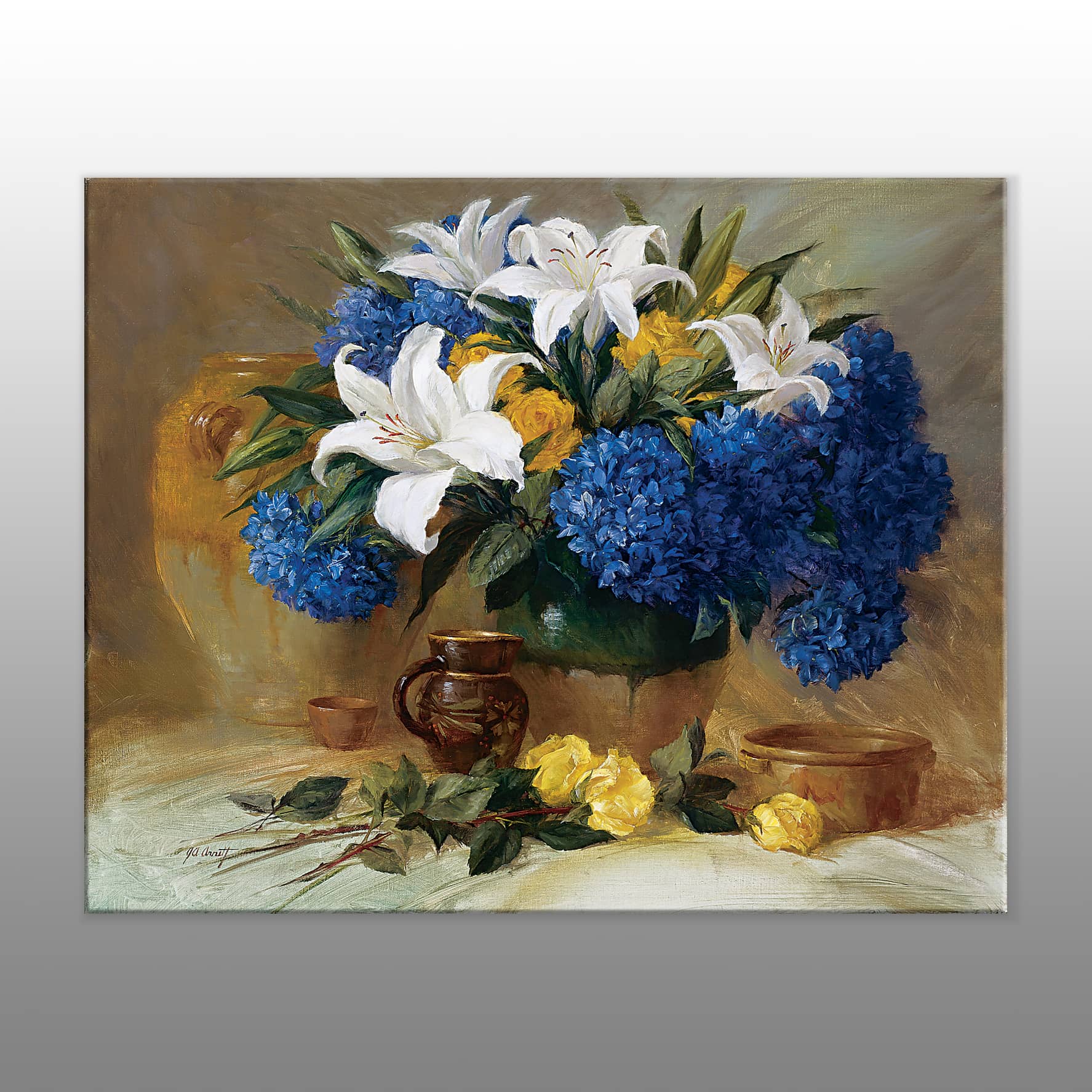 Bir Demet Beyaz ve Mavi Çiçek Kanvas Baskı Tablo
