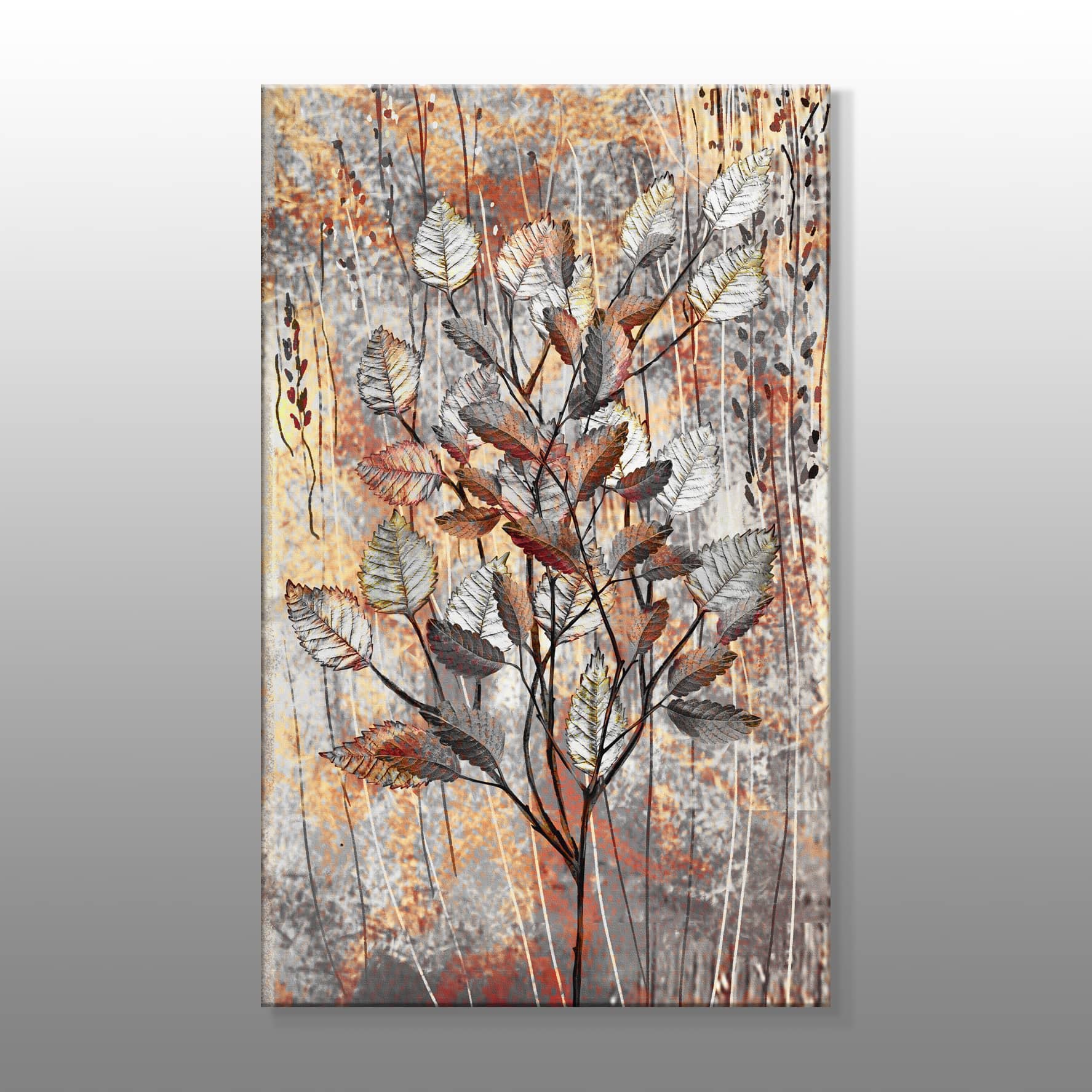 Bronz-Gümüş Renkli Yapraklar Kanvas Baskı Tablo