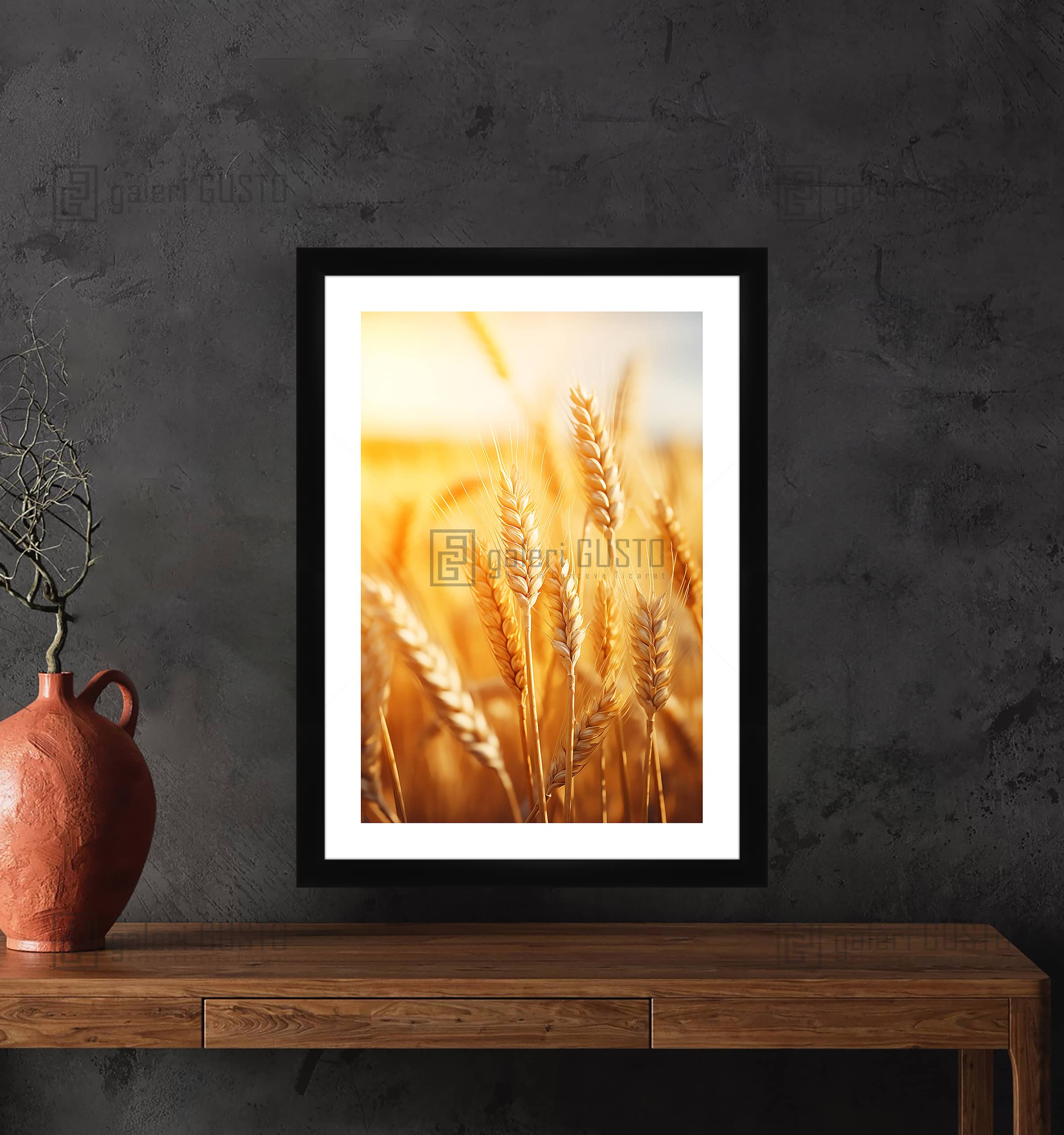 Buğday Taneleri Güneş Manzarası 3 Çerçeveli Poster