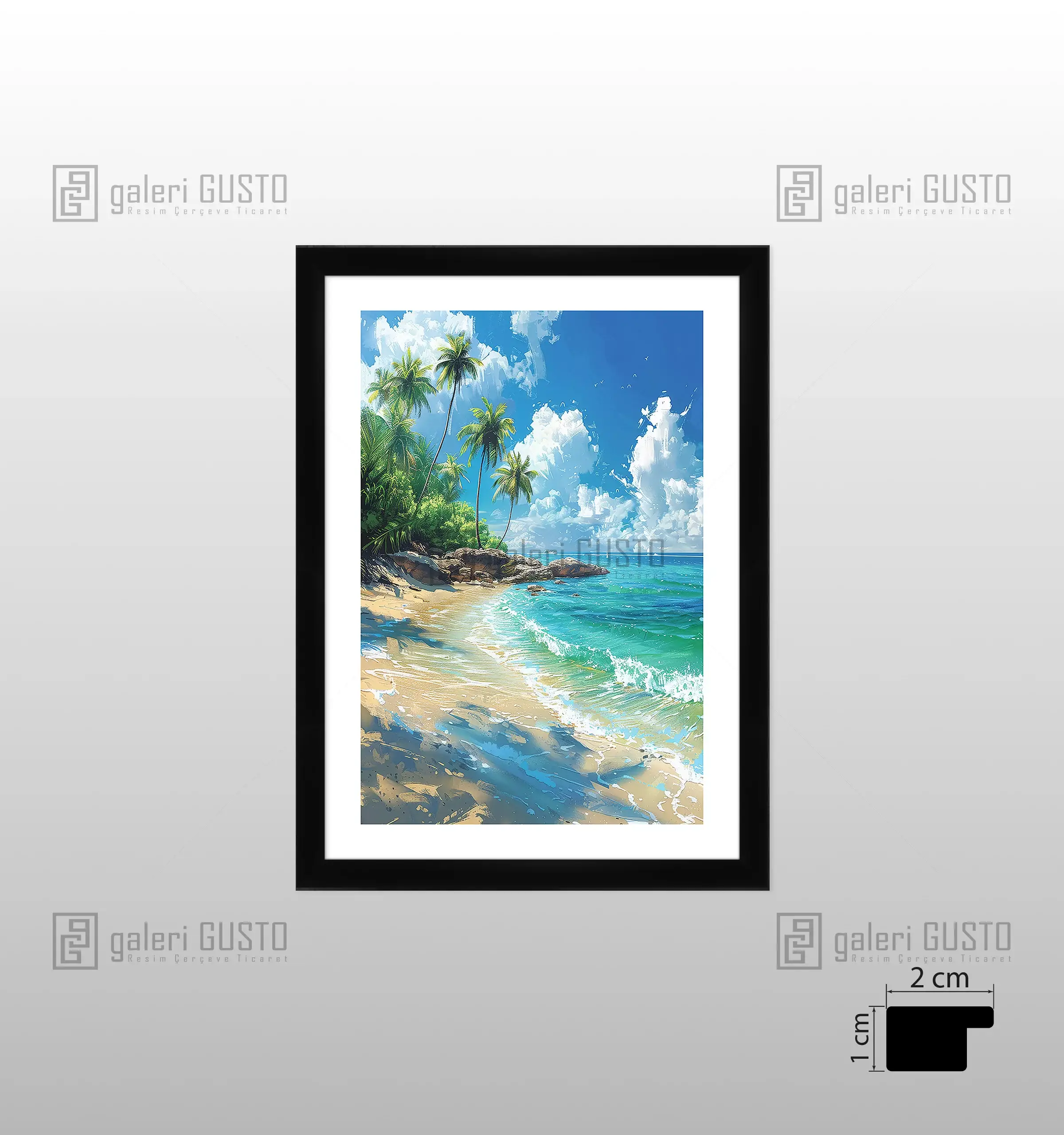 '50 gr/m² Mat Kuşe Kağıda Baskı Yapılmıştır. 2mm Normal Cam 2cm Siyah Lamine Çerçeve