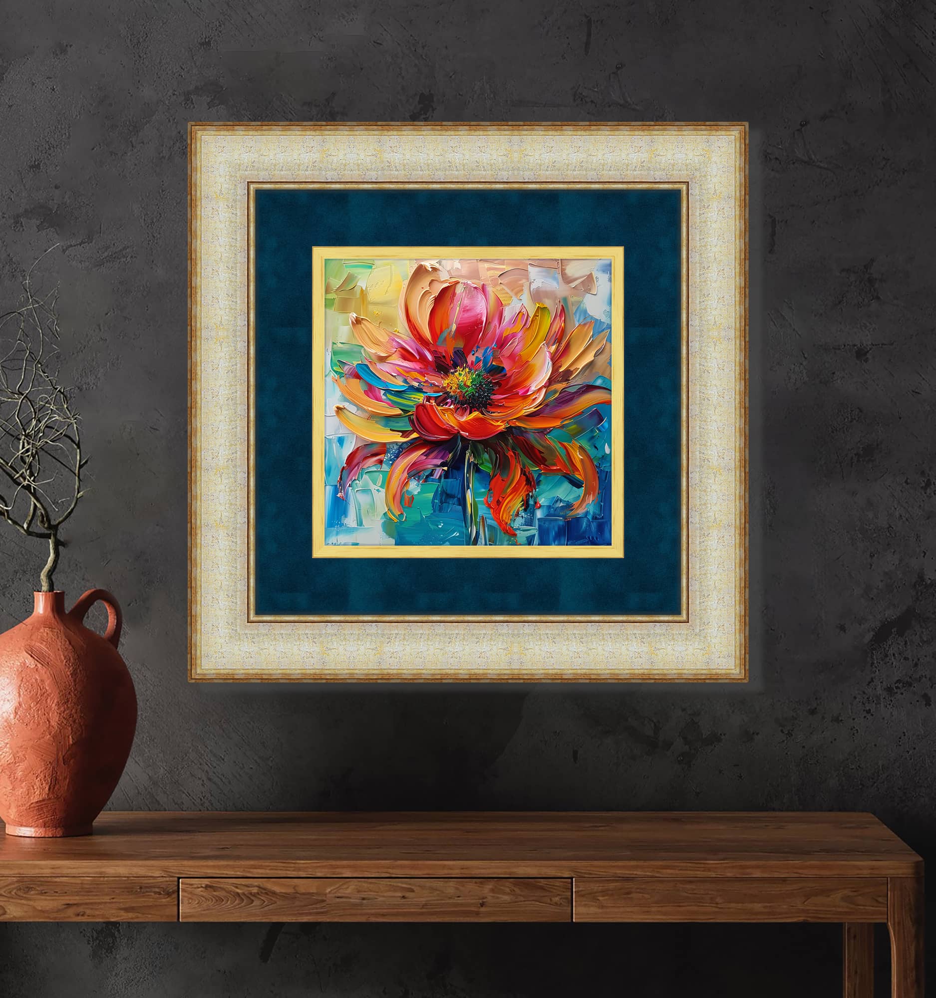 Canlı Renklerle Soyut Çiçek Tablosu