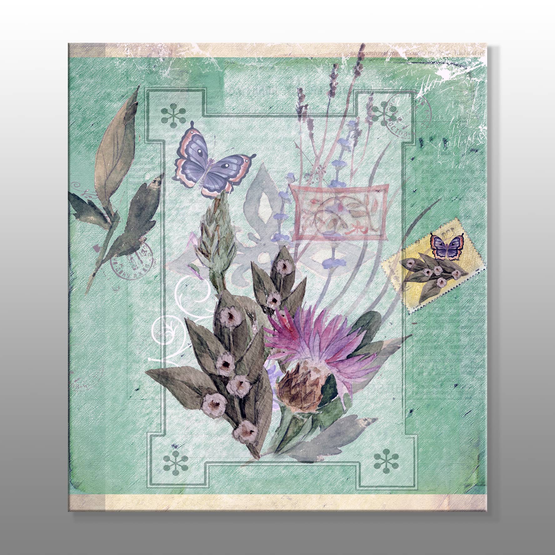 Çiçekli Yeşil Kartpostal Kanvas Baskı Tablo