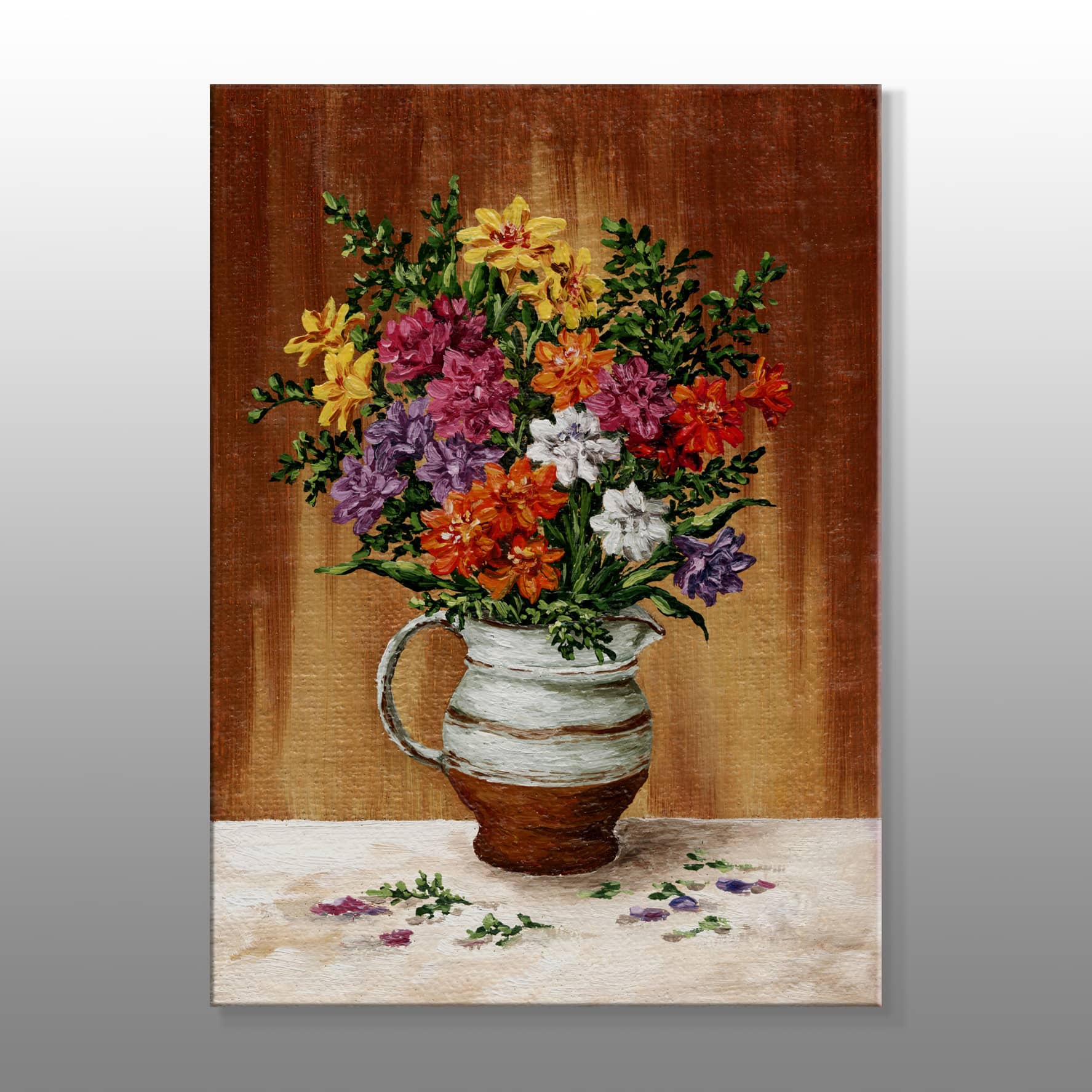 Çok Renkli Vazo Çiçekleri Kanvas Baskı Tablo