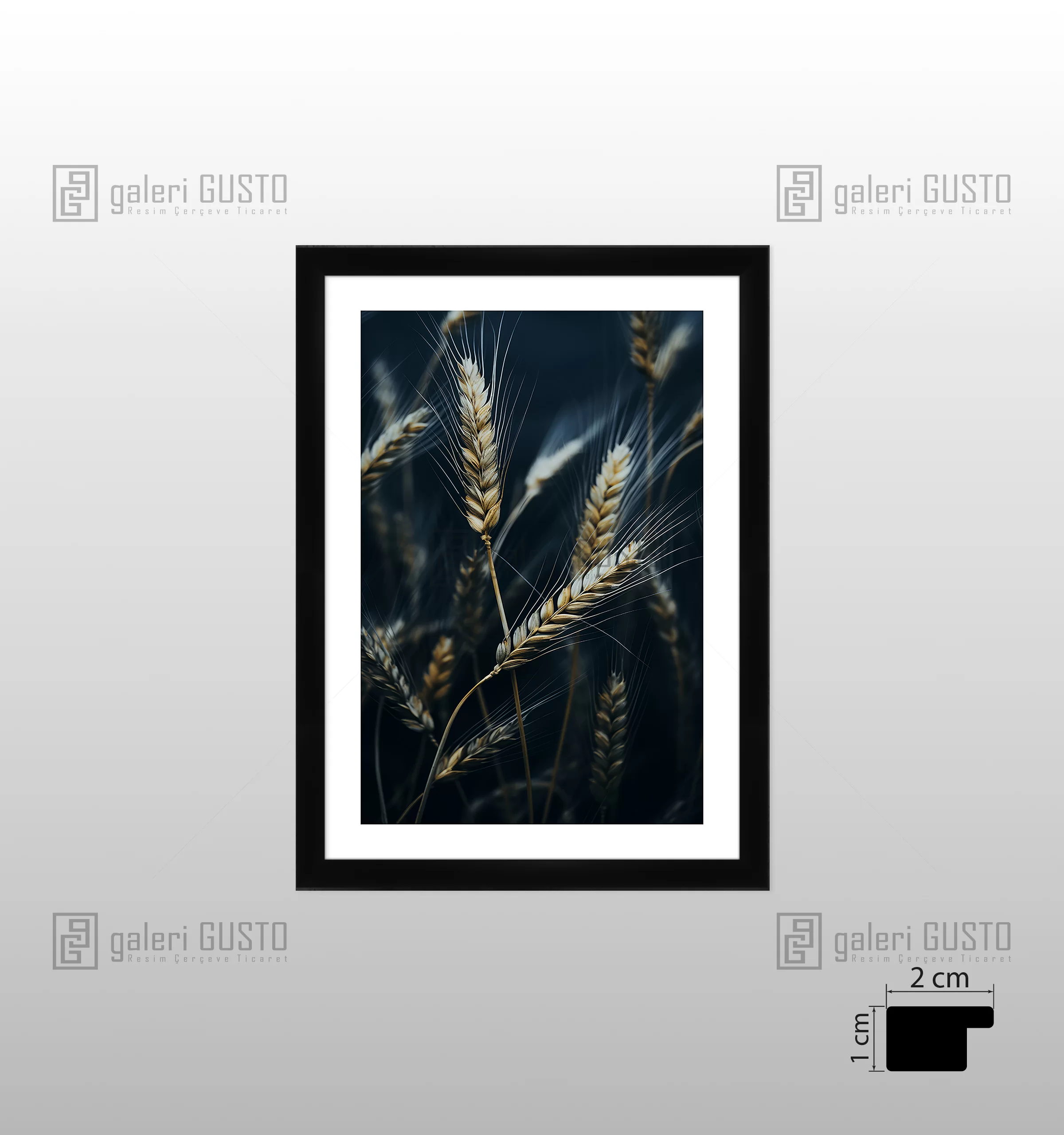 '50 gr/m² Mat Kuşe Kağıda Baskı Yapılmıştır. 2mm Normal Cam 2cm Siyah Lamine Çerçeve
