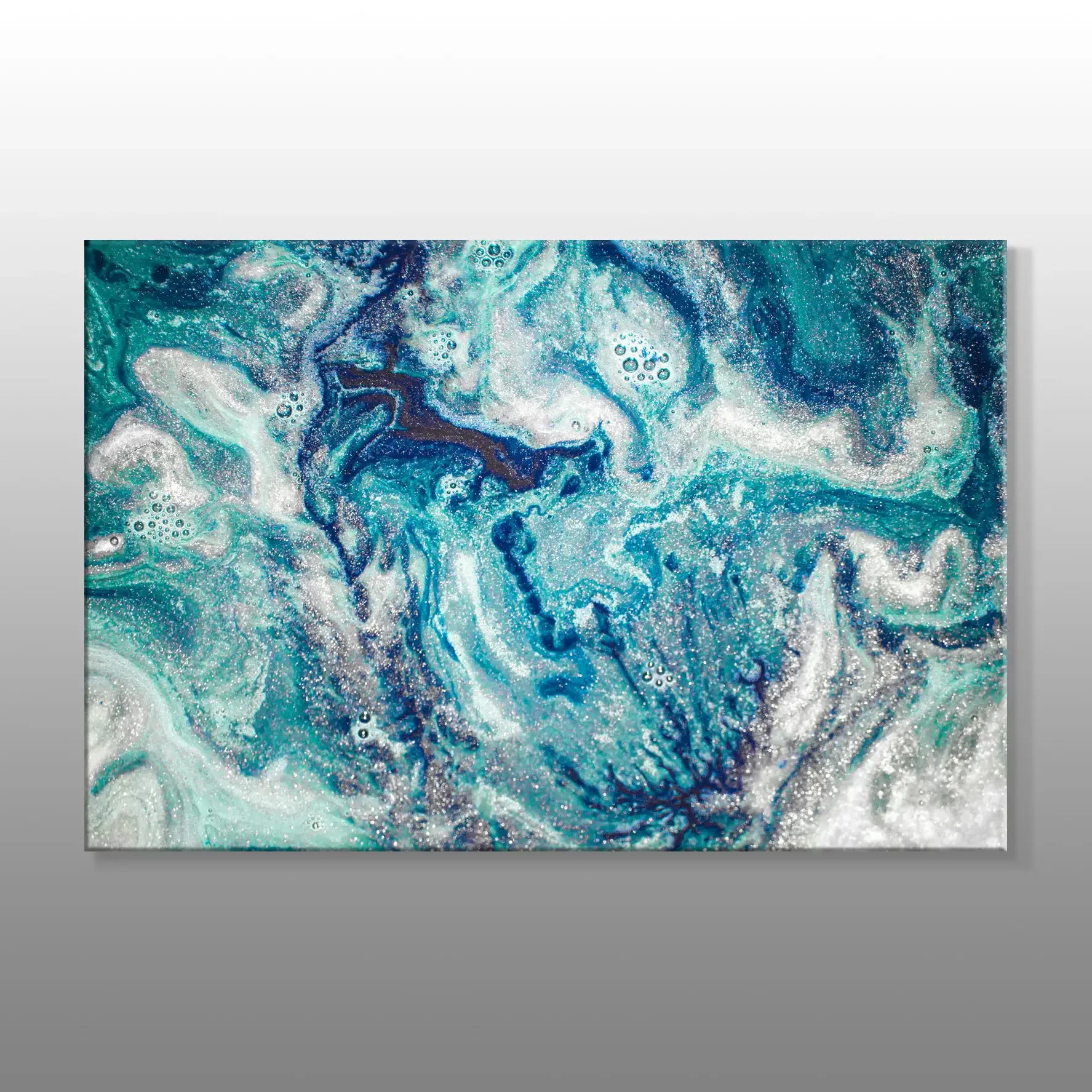 Dalgaların Üstündeki Gümüş Işıltılar Soyut Kanvas Baskı Tablo