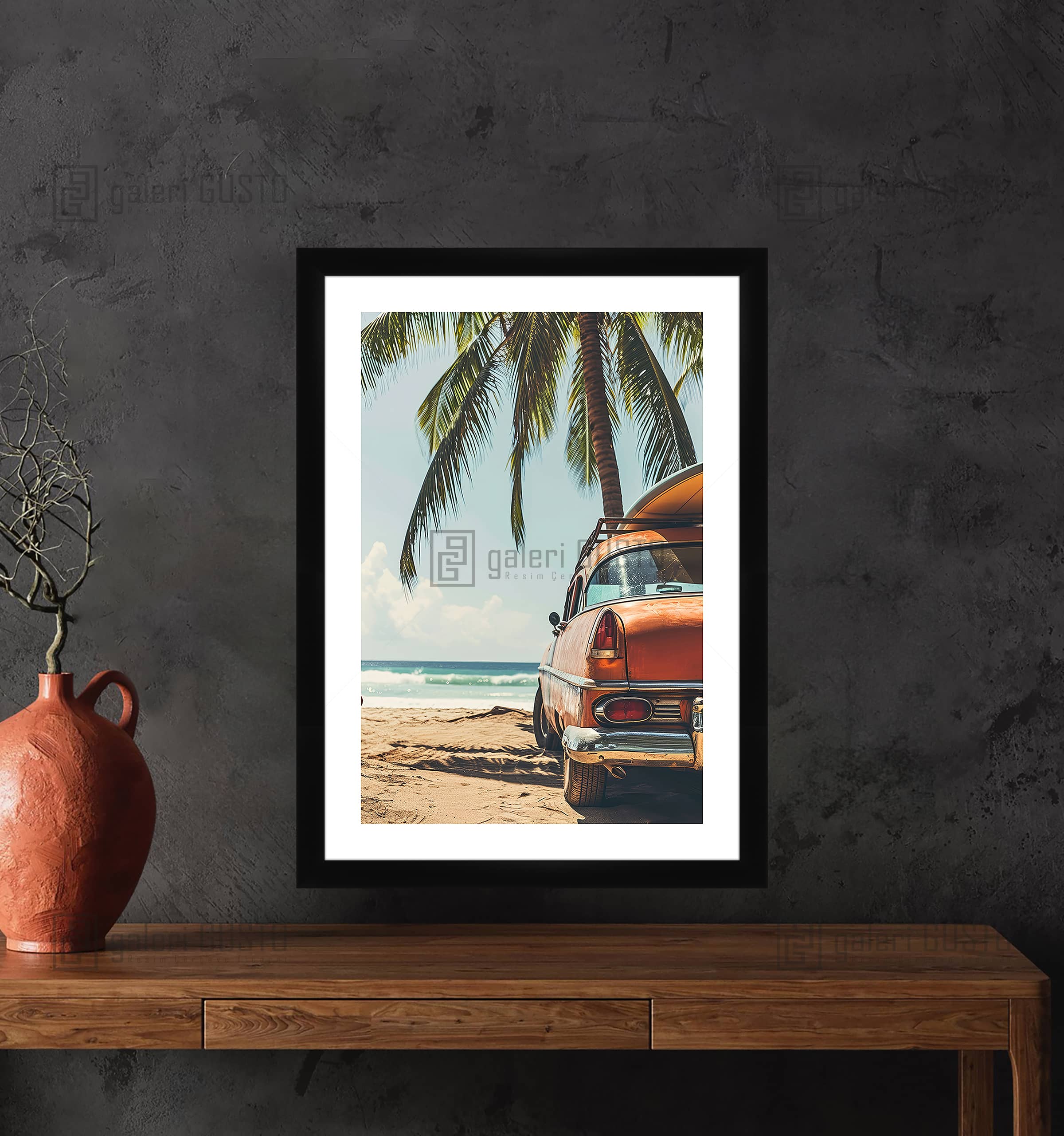 Deniz Kenarı Araba Manzarası Çerçeveli Poster