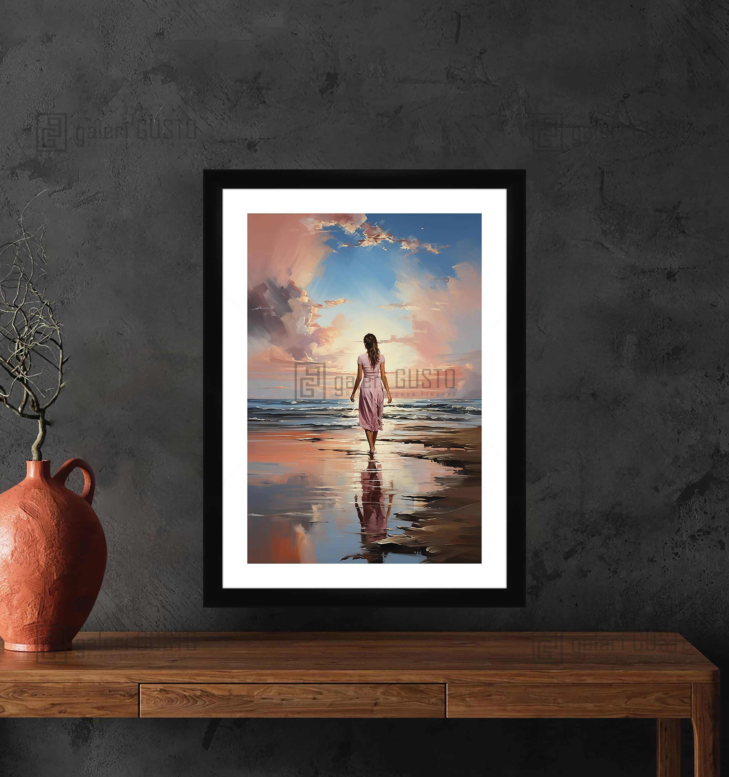 Deniz ve Kadın Yağlı Boya 4 Çerçeveli Poster