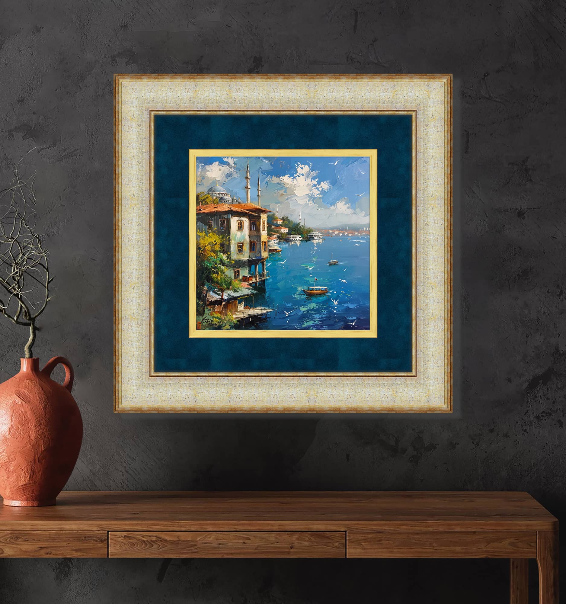 Deniz ve Tarih temalı bu eser, geçmişin izlerini ve denizin huzur verici etkisini birleştirerek sanatseverlere hem estetik hem de kültürel bir deneyim sunar. Deniz ve tarih, her zaman güçlü bir bağa sahip iki unsur olmuştur; denizler, tarihin derinliklerine açılan kapılar gibi geçmişteki kültürlerin, medeniyetlerin izlerini taşır. Bu eser, denizin dinginliği ile tarihî geçmişin karmaşıklığını birleştirerek güçlü bir anlatı yaratır. Bir deniz manzarası üzerine, eski zamanlardan kalma tarihi dokular, tablonun içindeki tarihî atmosferi oluşturur. Tablolarda, suyun yansıması ve ışığın yumuşak geçişleri, geçmişin yükünü taşıyan denizin zamanla nasıl şekillendiğini anlatır. Bu eser hem tarihi hem de denizin derinliklerine dair bir duygusal bağ kurmak isteyenler için mükemmel bir seçenektir. Deniz ve Tarih eseri, mekânınıza nostaljik bir hava katarken, aynı zamanda tarihle iç içe geçmiş bir deniz hikâyesi sunar. Eğer bu tür eserleri seviyorsanız, Galeri Gusto'nun sunduğu tarihi ve deniz manzaralı eser ürününü dekorasyonunuza katabilirsiniz.