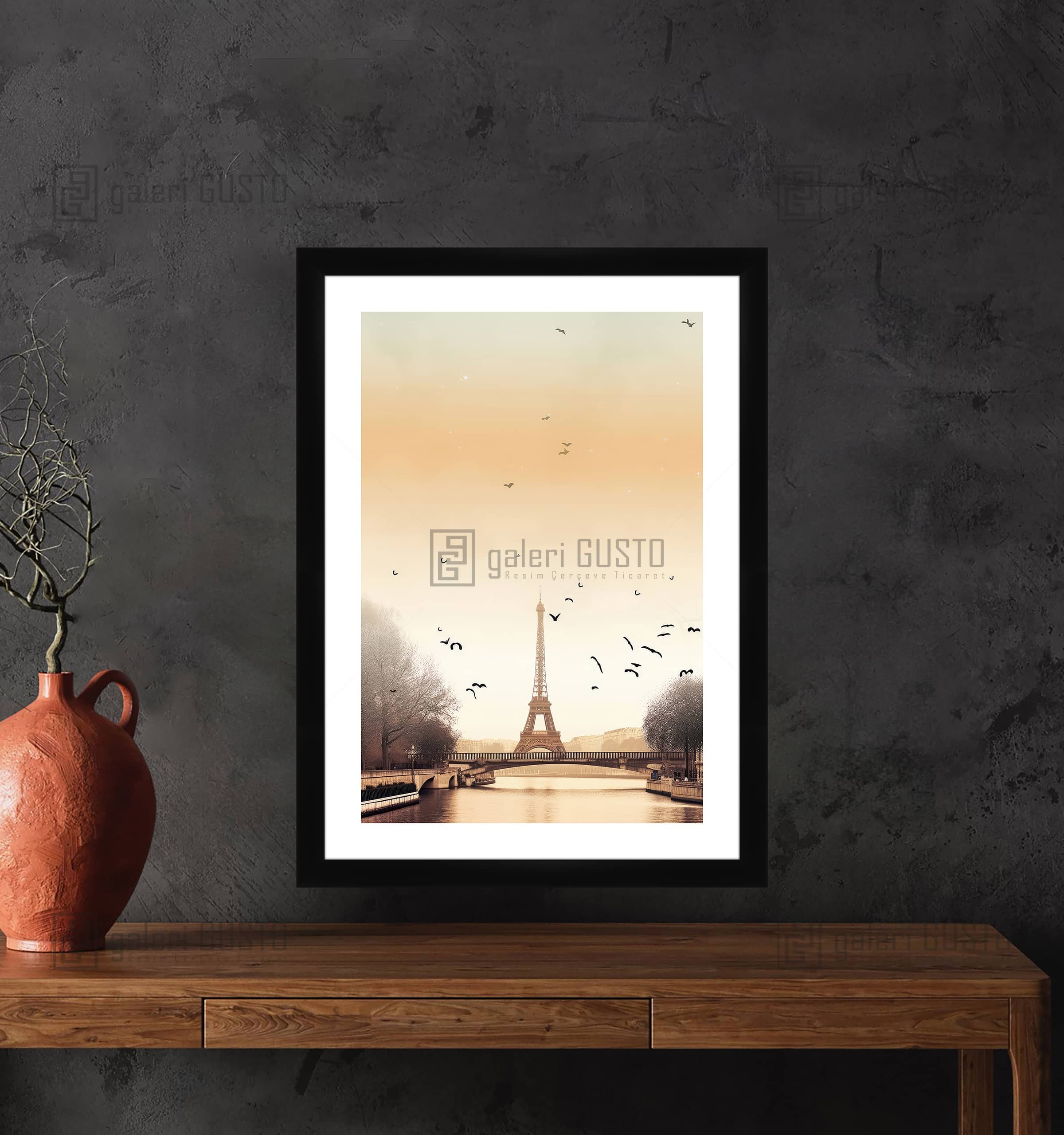 '50 gr/m² Mat Kuşe Kağıda Baskı Yapılmıştır. 2mm Normal Cam 2cm Siyah Lamine Çerçeve