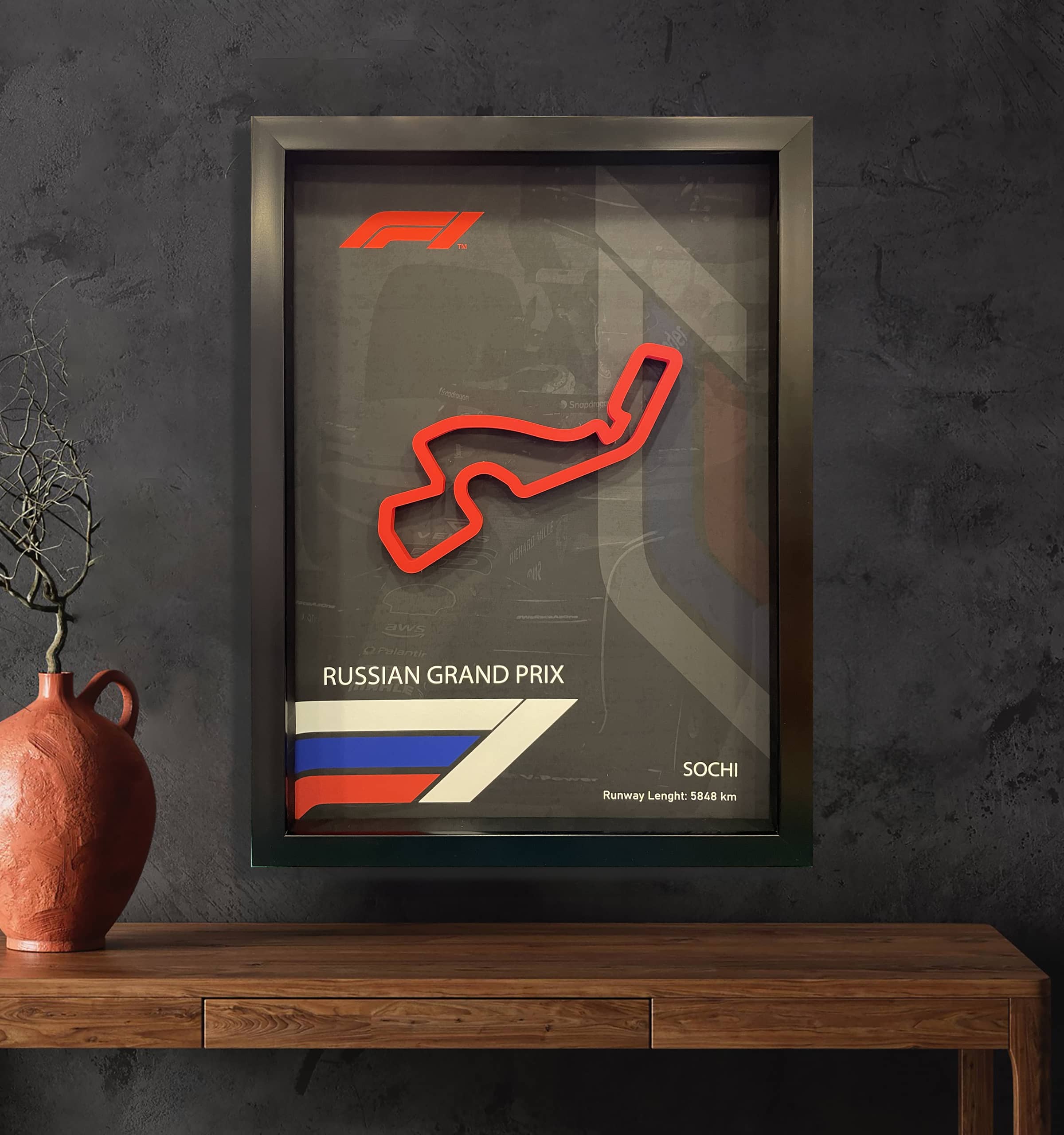 F1 Sochi Yarış Pisti 3D / CNC Baskılı Çerçeve, Formula 1 tutkunları için eşsiz bir dekoratif parça sunar. Rusya'nın Sochi şehrinde bulunan bu prestijli yarış pisti, motor sporları meraklıları için büyük bir öneme sahiptir ve şimdi, bu ikonik pistin her virajı, her düzlüğü, 3D teknolojisi ile evinize taşınıyor. CNC baskı teknolojisi ile yüksek hassasiyetle üretilen bu tablo, 3D baskının etkisiyle göz alıcı bir şekilde belirginleşir. Bu teknoloji sayesinde, pisti sadece düz bir görüntü olarak görmekle kalmaz, aynı zamanda derinlik ve hareket hissiyatı ile gerçekçi bir atmosfer yaratır. Sochi Yarış Pisti 3D / CNC Baskılı Çerçeve, hız ve estetiği birleştiren bir sanat eseridir. Şeffaf malzemelerle oluşturulmuş 3D yapısı, pistin üzerindeki detayların görünürlüğünü artırır, yarış atmosferini evinize taşır. Modern çerçeve tasarımı, her türlü iç mekâna şıklık ve dinamizm katarken, motor sporları dünyasına olan tutkunuzu sergilemenin mükemmel bir yolunu sunar.
