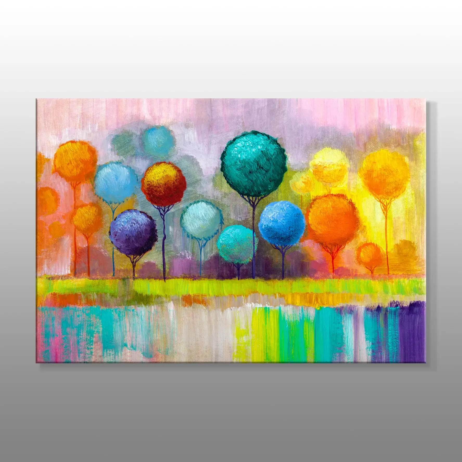 Göle Yansıyan Gökkuşağı Renkli Ağaçlar Soyut Kanvas Baskı Tablo