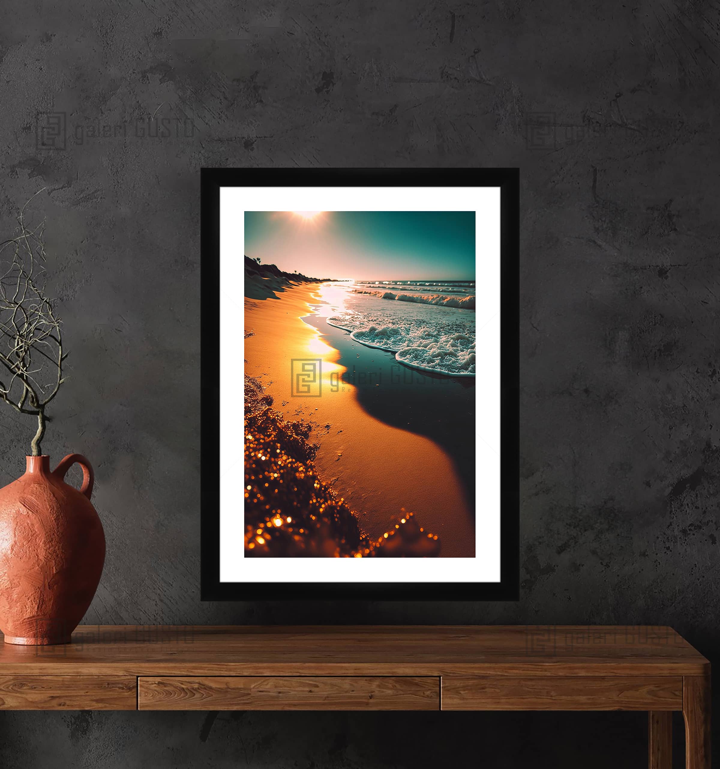 Gün Batımı Sahil ve Deniz Manzarası Çerçeveli Poster