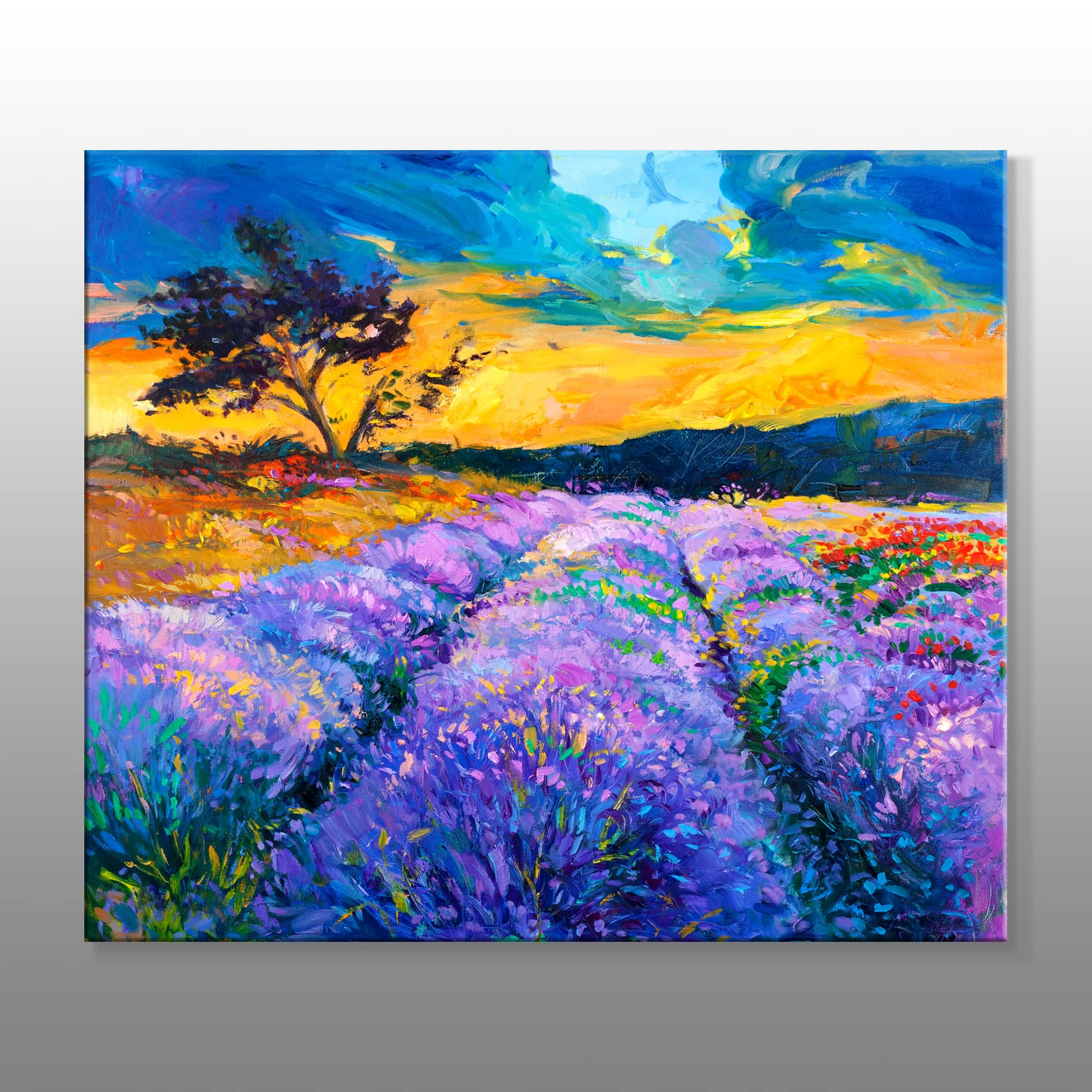 Günbatımında Lavanta Tarlası Kanvas Baskı Tablo