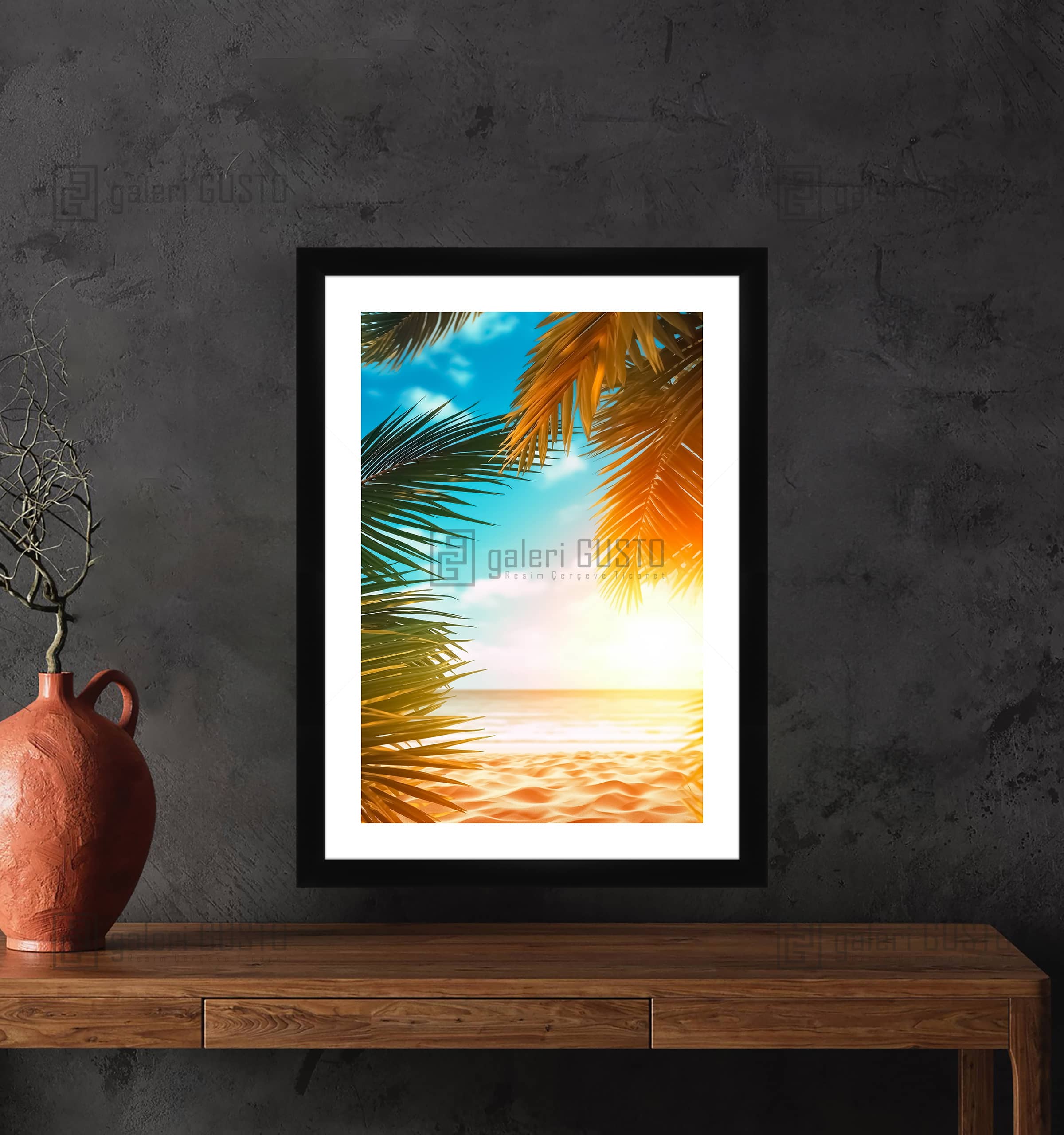 '50 gr/m² Mat Kuşe Kağıda Baskı Yapılmıştır. 2mm Normal Cam 2cm Siyah Lamine Çerçeve