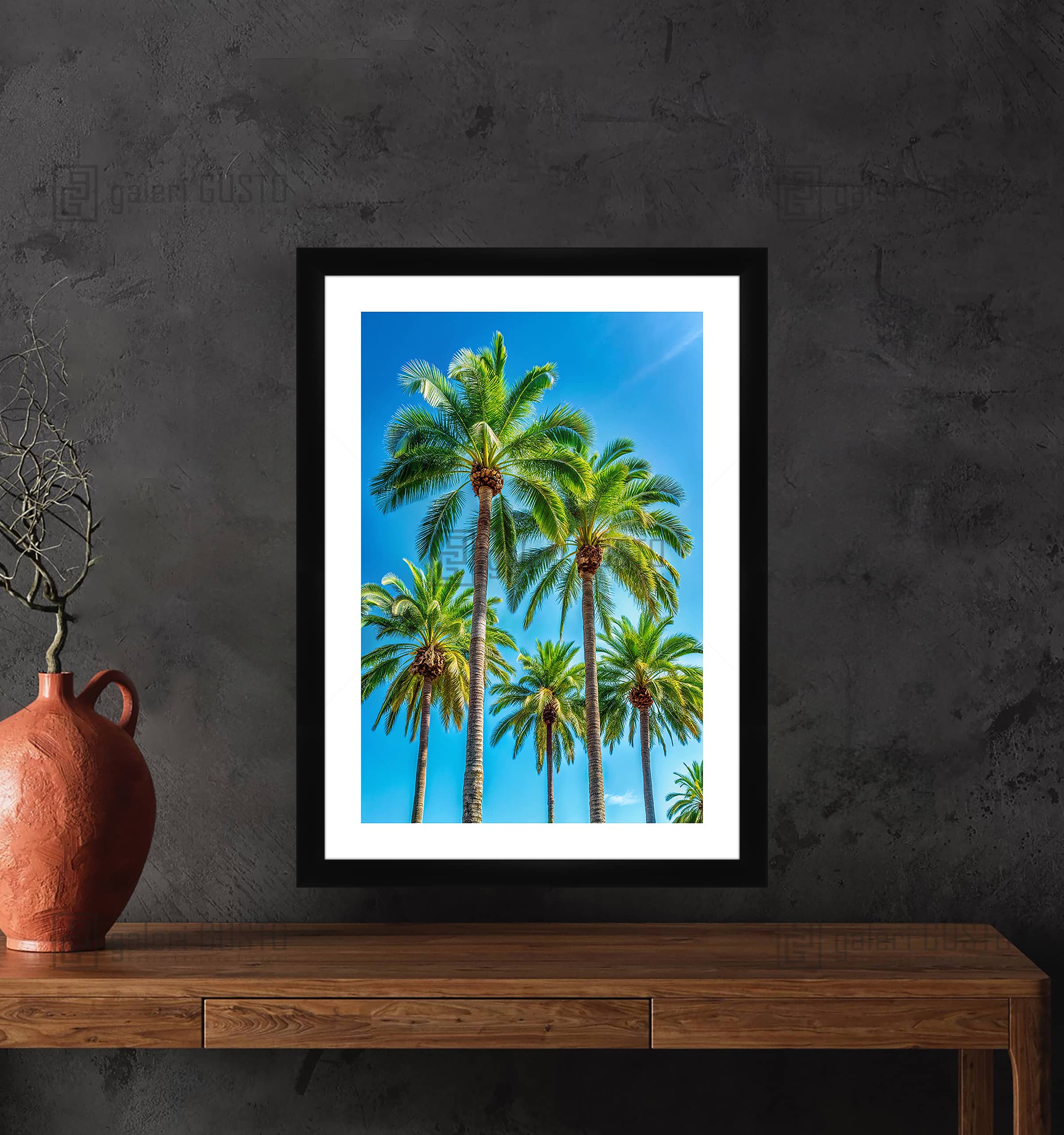 Güneş Işınlarınlarıyla Palmiye Manzarası Çerçeveli Poster