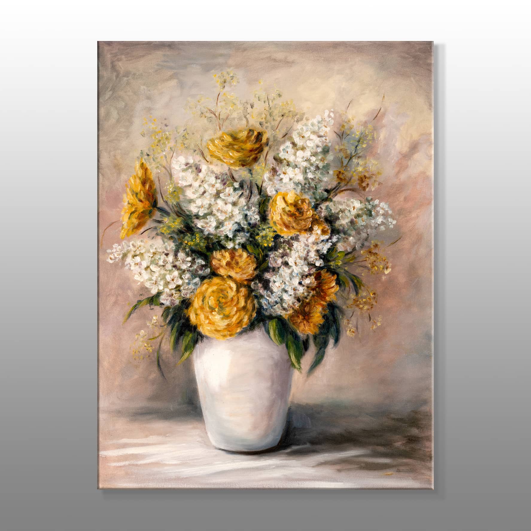 Hardal Ve Beyaz Renkli Çiçek Buketi Kanvas Baskı Tablo