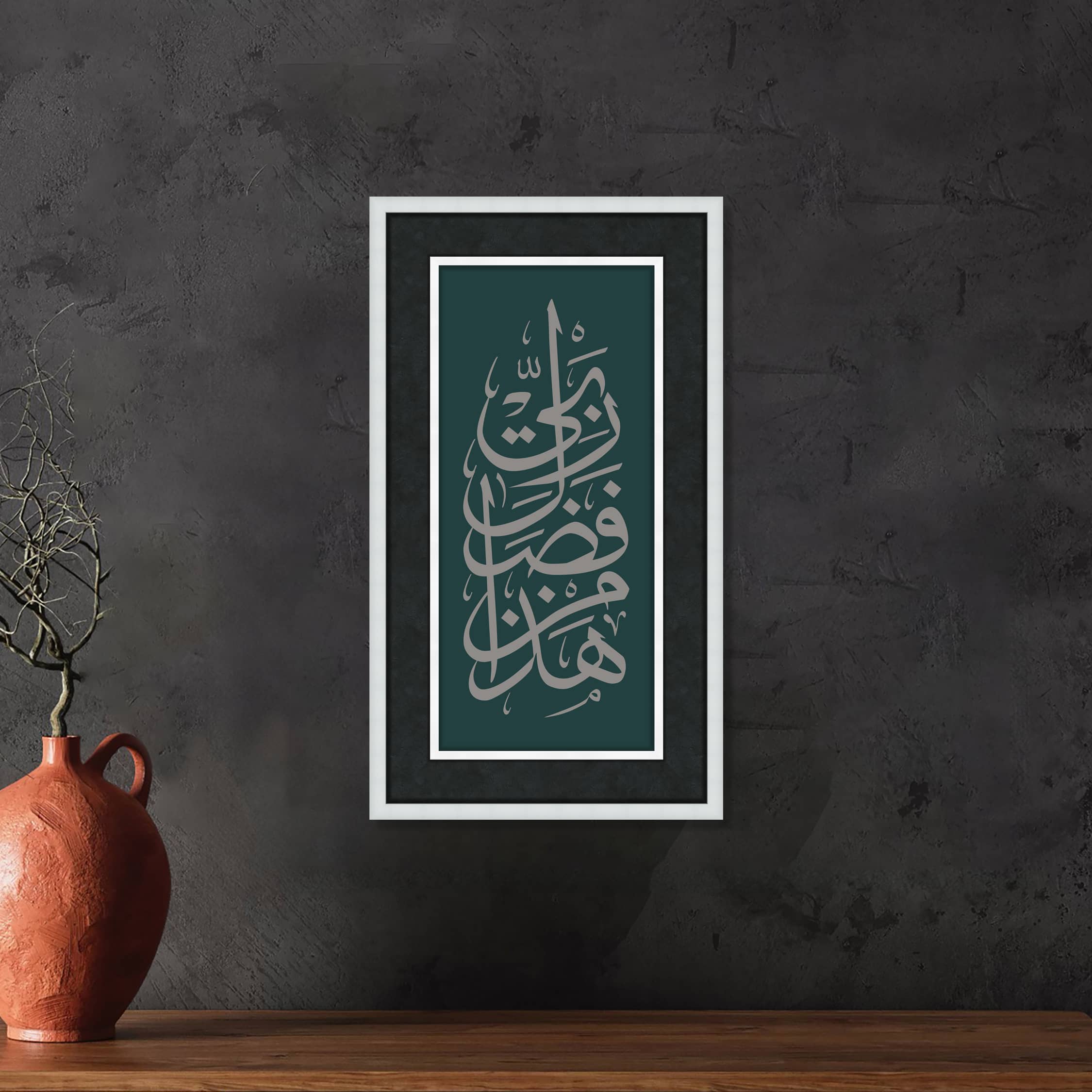 "Hâzâ min fadli rabbî" (هَذَا مِنْ فَضْلِ رَبِّي) ifadesi Arapça bir cümledir ve İslam kültüründe sıkça kullanılır. Bu ifade, Kur'an-ı Kerim'de yer almakta olup kişinin sahip olduğu nimetlerin ve başarıların Allah’ın lütfu ve ihsanı olduğunu ifade eder. Anlamı şöyledir: Anlamı: "Bu, Rabbimin lütfundandır." Bu ifade, kişinin Allah’ın verdiği nimetlere ve iyiliklere şükretmesi ve her şeyin Allah’ın ihsanı ile gerçekleştiğinin farkında olması gerektiğini anlatır. İslam'da tevazu ve şükür bilincini ifade eden önemli bir ifadedir. Kullanımı ve Önemi: Tevazu ve Şükür: Bu ifade, kişinin sahip olduğu başarıların, zenginliklerin, sağlık ve diğer tüm nimetlerin Allah’ın bir lütfu olduğunu kabul ettiğini ve buna karşı şükran dolu olduğunu belirtir. Kibir ve gururdan uzak durarak her şeyin Allah’tan geldiğini ve O’nun lütfuna muhtaç olduğumuzu hatırlatır. Kur'an-ı Kerim'de Geçişi: Bu ifade, Kur'an-ı Kerim’de Neml Suresi'nin 40. ayetinde yer alır. Ayette, Hz. Süleyman'ın (a.s.) Allah’ın kendisine verdiği büyük nimetler ve güç karşısında bu ifadeyi kullandığı anlatılır. Bu, onun sahip olduğu güç ve yeteneklerin Allah’tan bir lütuf olduğunu idrak ettiğini ve şükrünü ifade ettiğini gösterir. Günlük Kullanım: Müslümanlar, günlük hayatlarında sahip oldukları nimetler, başarılar veya güzellikler karşısında bu ifadeyi kullanarak Allah’a şükranlarını dile getirirler. Özellikle bir nimete kavuştuklarında veya bir zorluğun üstesinden geldiklerinde bu söz söylenir. Sonuç: "Hâzâ min fadli rabbî" ifadesi, İslam'da kişinin Allah’a olan şükrünü, tevekkülünü ve her türlü nimetin kaynağının Allah olduğuna olan inancını dile getiren anlamlı bir cümledir. Müslümanlar için Allah’ın lütuflarını hatırlatıcı ve O’na karşı olan minnettarlıklarını ifade eden önemli bir zikirdir. Çerçeve , Lamine Çerçeveden üretilmiştir. Çift katmanlı çerçeve kırık beyaz renginde, derinlikli çeçreve kullanılmıştır, Baskı, Hahnemühle, Stüdio Enhenced 190 gr /m² Kağıt Kullanılmıştır. Paspartu; 6 cm Siyah İthal 17 micron kağıt kullanılmıştır. Cam, 2 mm Normal Cam Kullanılmıştır.