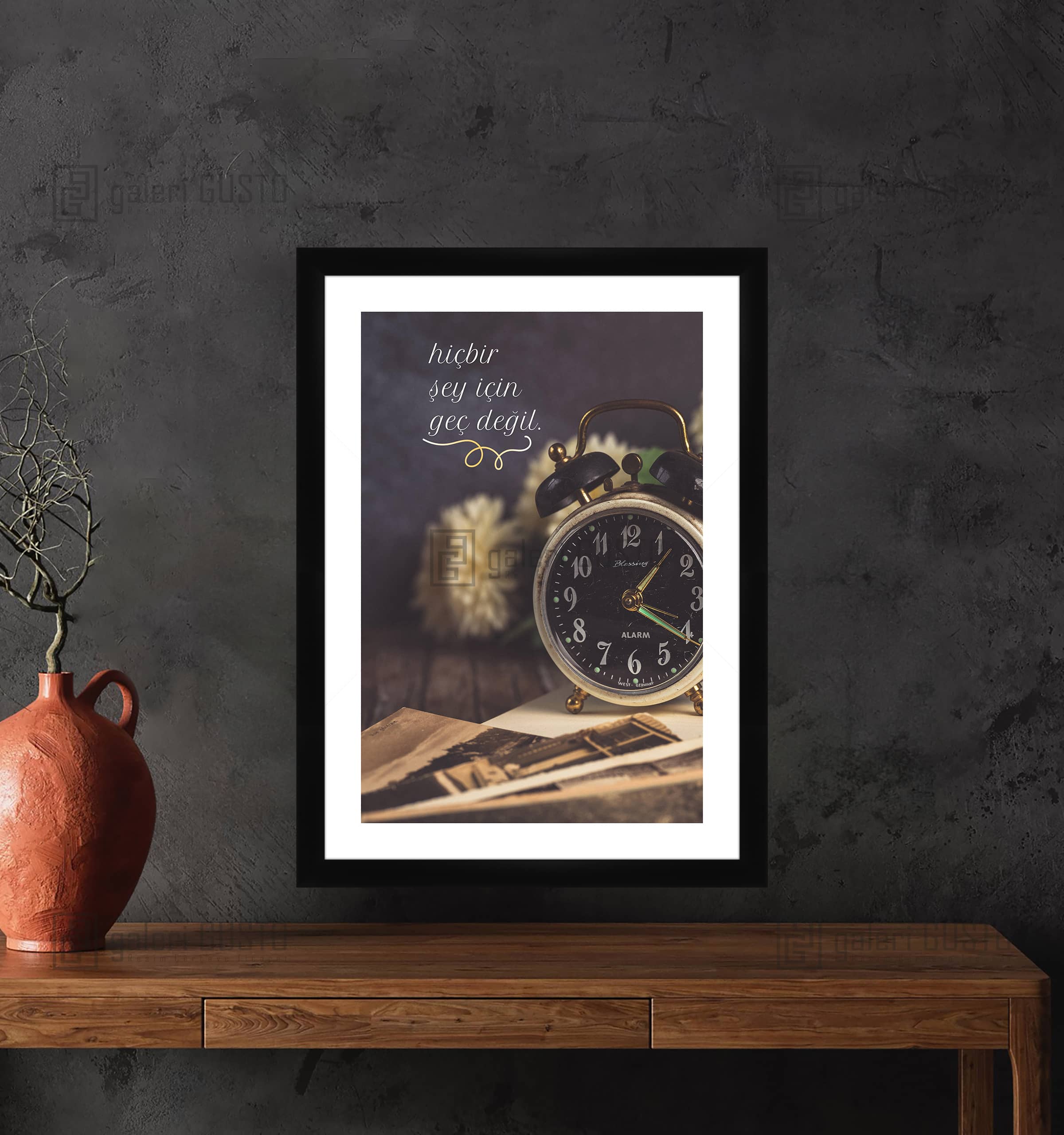 '50 gr/m² Mat Kuşe Kağıda Baskı Yapılmıştır. 2mm Normal Cam 2cm Siyah Lamine Çerçeve