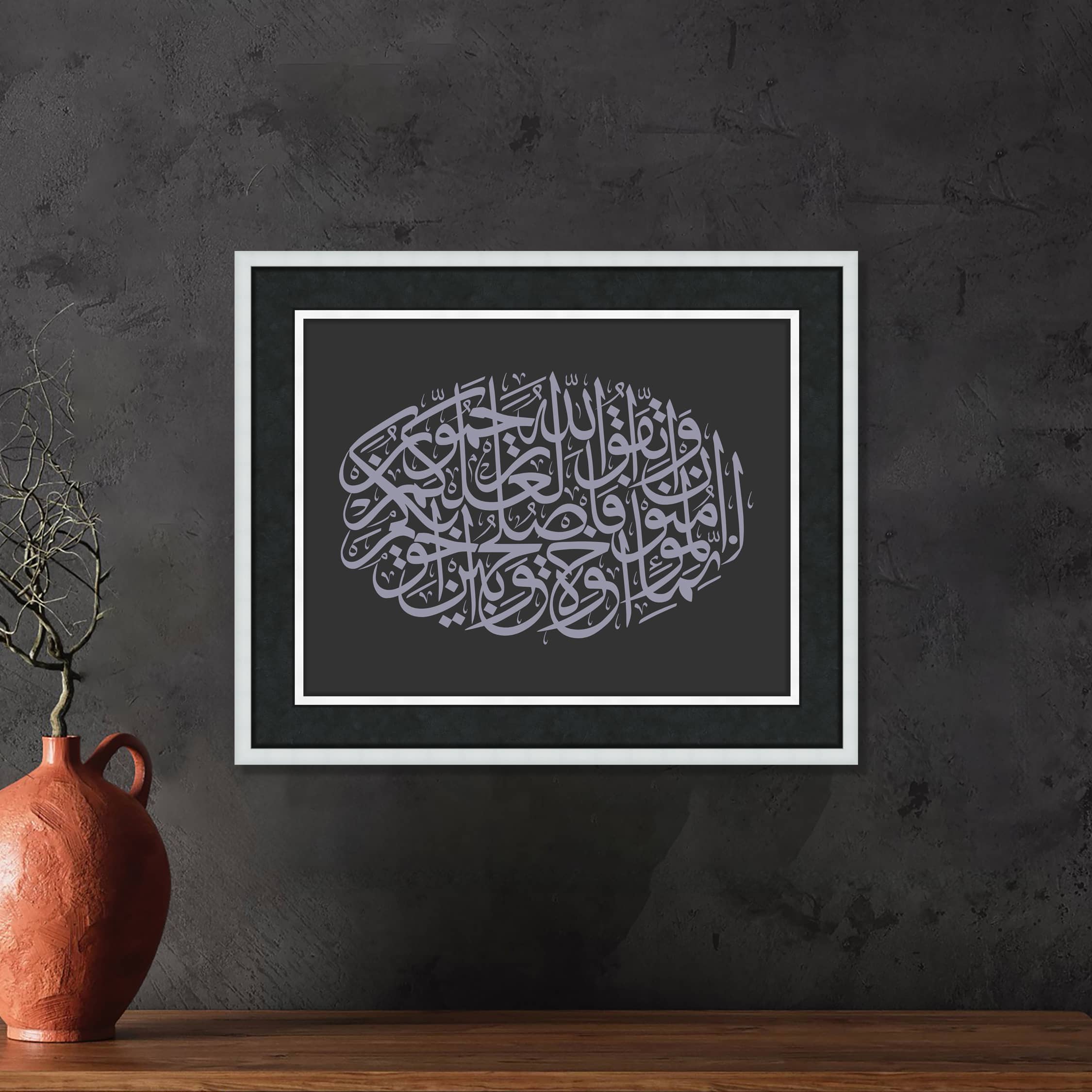 Türkçe Meali: "Müminler ancak kardeştirler. Öyleyse kardeşlerinizin arasını düzeltin ve Allah'tan korkun ki rahmete eresiniz." Ayetin Anlamı ve Açıklaması Kardeşlik Kavramı: Ayet, tüm müminlerin kardeş olduğunu vurgular. Bu, kan bağı dışında, inanç birliği temelinde bir kardeşliktir. İslam toplumunda, tüm müminler arasında sevgi, merhamet, adalet ve yardımlaşma esas olmalıdır. Barışı Sağlama ve Arayı Düzeltme: Ayet, müminler arasında meydana gelebilecek anlaşmazlıkları çözme ve barışı sağlama yükümlülüğünü hatırlatır. Müslümanlar, aralarındaki sorunları çözmek ve birlik içinde kalmak için çaba sarf etmelidir. Aralarındaki sorunların büyümemesi ve fitneye dönüşmemesi için barışı tesis etmek İslam'ın temel prensiplerindendir. Allah'tan Korkmak ve Takva: Ayet ayrıca Allah’tan korkup sakınmayı (takva) öğütler. Bu, Allah’ın emirlerine uygun bir şekilde hareket etmeyi ve Müslümanlar arasında adaleti ve huzuru sağlamayı içerir. Allah’tan korkarak, bu ilahi emre uymak, dünya ve ahiret saadetinin anahtarı olarak gösterilmiştir. Rahmete Erişmek: Ayetin son kısmı, Allah’ın rahmetine nail olmanın, müminlerin birbirleriyle iyi geçinmelerine, aralarındaki sorunları çözmelerine ve Allah’tan korkarak yaşantılarını sürdürmelerine bağlı olduğunu ifade eder. Rahmet, sadece dünya hayatında huzur değil, ahiret saadeti için de bir anahtardır. Ayetin Önemi ve Toplumsal Mesajı Toplumda Barış ve Huzurun Temeli: Bu ayet, İslam toplumlarının temelini oluşturan kardeşlik, birlik ve beraberlik kavramlarını vurgular. Müminler arasındaki anlaşmazlıklar, fitne ve bölünmelere yol açmadan çözülmeli, barış ve huzur sağlanmalıdır. Müslümanların Birbirine Karşı Sorumluluğu: Bu ayet, her Müslümanın diğer müminlerin iyiliği ve esenliği için sorumluluk taşıdığını hatırlatır. Herhangi bir tartışma veya anlaşmazlık durumunda arabuluculuk yapmak ve barışı sağlamak, her Müslümanın görevidir. İslam Ahlakının Temel İlkeleri: Hucurat Suresi 10. Ayet, İslam ahlakının temel ilkelerini hatırlatır: kardeşlik, adalet, merhamet, takva ve Allah'a karşı sorumluluk bilinci. Sonuç Hucurat Suresi 10. Ayet, Müslümanlar arasındaki kardeşlik bağlarının ne kadar güçlü olması gerektiğini ve barışı sağlamanın önemini vurgulayan önemli bir ayettir. İslam toplumunda birliğin, beraberliğin ve huzurun sağlanması için Müslümanların birbirine karşı sorumluluklarının ve Allah'a olan takvalarının farkında olmaları gerektiğini hatırlatır. Çerçeve , Lamine Çerçeveden üretilmiştir. Çift katmanlı çerçeve kırık beyaz renginde, derinlikli çeçreve kullanılmıştır, Baskı, Hahnemühle, Stüdio Enhenced 190 gr /m² Kağıt Kullanılmıştır. Paspartu; 6 cm Siyah İthal 17 micron kağıt kullanılmıştır. Cam, 2 mm Normal Cam Kullanılmıştır.