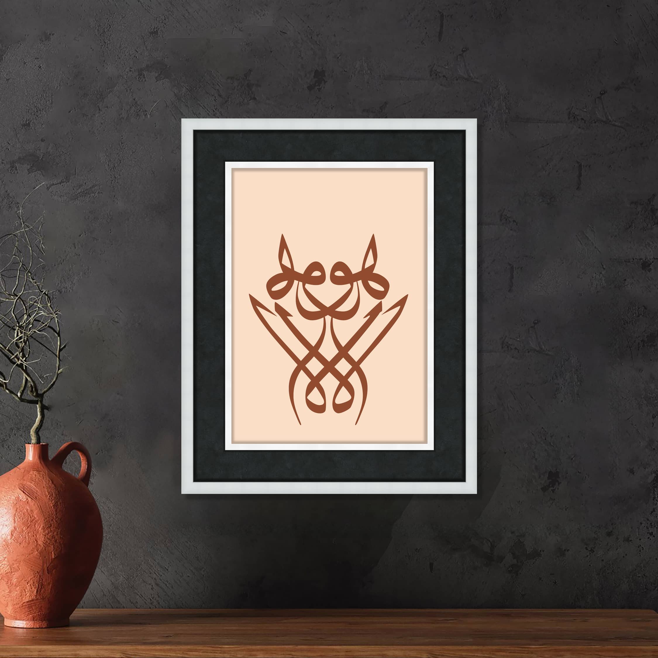 "İllalla Hu" ifadesi, Arapça kökenli bir tasavvuf terimidir ve "Ancak O (Allah)" anlamına gelir. Bu ifade, Allah'ın birliğini ve yüceliğini vurgulayan bir tevhid cümlesidir. Tasavvufta ve zikir meclislerinde Allah'ın isimlerini ve O'nun birliğini zikretmek amacıyla kullanılır. Birleştirilmiş haliyle, "İllalla Hu", "Ancak O (Allah)" anlamına gelir ve Allah'tan başka hiçbir varlığın olmadığını ve her şeyin O'na ait olduğunu ifade eder. Kullanımı: Tasavvuf ve Zikir: Tasavvuf geleneğinde, "İllalla Hu" ifadesi sıkça kullanılan zikirlerden biridir. Dervişler ve sufiler, Allah’ın birliğini ve kudretini zikretmek ve O'na olan bağlılıklarını ifade etmek için bu kelimeyi tekrar ederler. Tevhid İfadesi: "İllalla Hu" ifadesi, İslam'daki tevhid inancını, yani Allah'ın bir ve tek olduğunu, O'ndan başka ilah olmadığını ifade eder. Bu tür ifadeler, Müslümanların Allah’a olan inançlarını ve O'nun her şeyin üzerinde olan yüce makamını vurgulamak için kullanılır. Tasavvuf Bağlamında Önemi Tasavvufta, Allah'a yakınlaşmanın ve O'na olan sevgiyi ve bağlılığı ifade etmenin en önemli yollarından biri zikirdir. "İllalla Hu" gibi ifadeler, sufilerin Allah'a olan aşklarını ve bağlılıklarını dile getirdikleri güçlü ifadelerden biridir. Bu ifade, birliğin ve tekliğin vurgusudur ve sufiler için manevi bir tefekkür ve ibadet aracıdır. Sonuç "İllalla Hu" ifadesi, İslam'ın ve özellikle tasavvufun temel inanç prensiplerinden olan tevhidi, yani Allah'ın birliğini ve yüceliğini ifade eder. Allah'ın bir ve tek olduğunu, her şeyin üzerinde olduğunu hatırlatır ve Müslümanlar arasında Allah’a olan bağlılığı ve teslimiyeti derinleştiren bir zikir olarak kullanılır. Çerçeve , Lamine Çerçeveden üretilmiştir. Çift katmanlı çerçeve kırık beyaz renginde, derinlikli çeçreve kullanılmıştır, Baskı, Hahnemühle, Stüdio Enhenced 190 gr /m² Kağıt Kullanılmıştır. Paspartu; 6 cm Siyah İthal 17 micron kağıt kullanılmıştır. Cam, 2 mm Normal Cam Kullanılmıştır.
