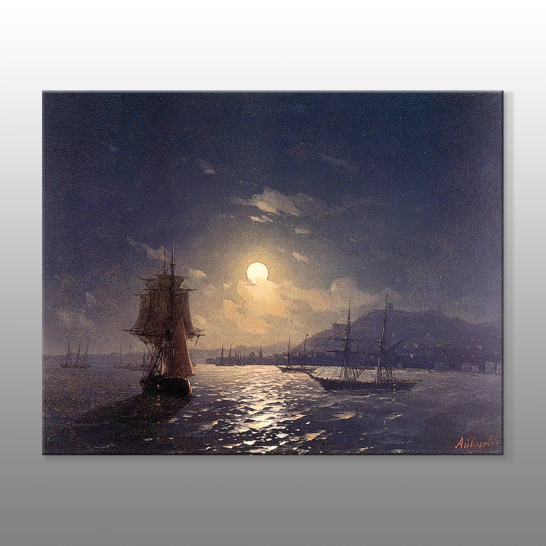 Ivan Aivazovsky Ay Işığında Deniz adlı eseri, sanatçının doğa sevgisini ve ışık ile su arasındaki muazzam uyumu ele alışındaki ustalığını gözler önüne seriyor. Deniz resimleriyle ün kazanan Aivazovsky, bu tabloda romantizmin ve melankolinin izlerini taşır. Tabloda, ay ışığının deniz yüzeyine yansımasıyla oluşan parıltı, eserin merkezinde yer alır. Huzurlu bir gece manzarası, dalgaların yumuşak hareketleri ve gökyüzündeki yıldızlarla bütünleşir. Gümüş rengindeki ay ışığı, denizi adeta bir ayna gibi parlatarak, esere derinlik ve mistik bir hava katar. Gökyüzü ile denizin kesiştiği ufuk çizgisi ise, sonsuzluğu çağrıştırır ve izleyiciyi hayal dünyasına taşır. Aivazovsky’nin ince fırça darbeleriyle hayat verdiği bu sahne, insanı hem sakinleştirir hem de derin bir düşünceye sürükler. Denizcilere ait bir tekne ya da kıyıda beliren bir figür, esere yaşam katarken, izleyiciyi doğanın ihtişamı karşısında küçüklüğünü düşünmeye davet eder.