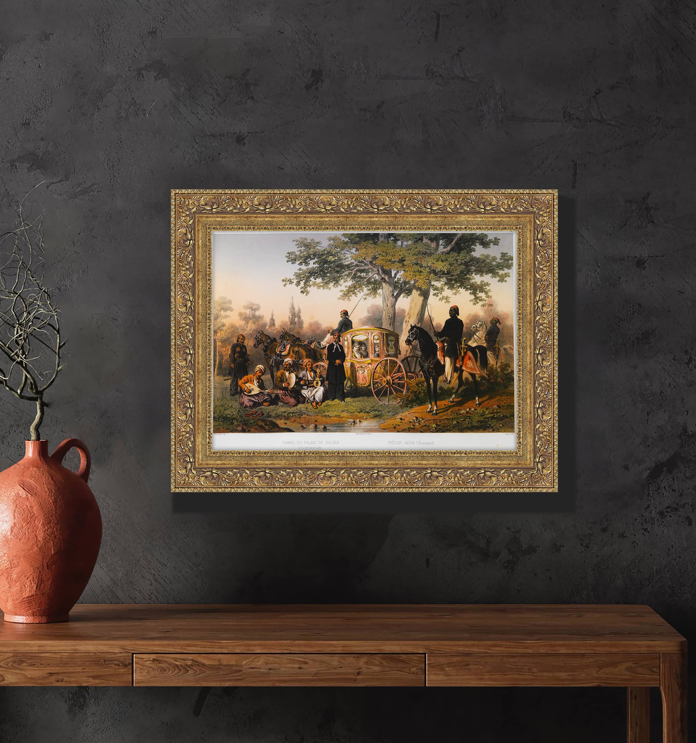 Bu tablo, Dames du Palais du Sultan (Sultan'ın Sarayındaki Hanımlar) olarak adlandırılmış bir sahneyi betimliyor. Görüntüde, bir grup Osmanlı kadını, bir arabada ve çevresinde atlı süvariler eşliğinde görülmektedir. Önde oturmuş olan müzisyenler, egzotik bir atmosfer yaratmak için kompozisyona dahil edilmiştir. Resmin altındaki yazılar, sahnenin Osmanlı sarayındaki hanımların dışarıda dolaşmasını ve onların korumalarını temsil ettiğini belirtiyor.