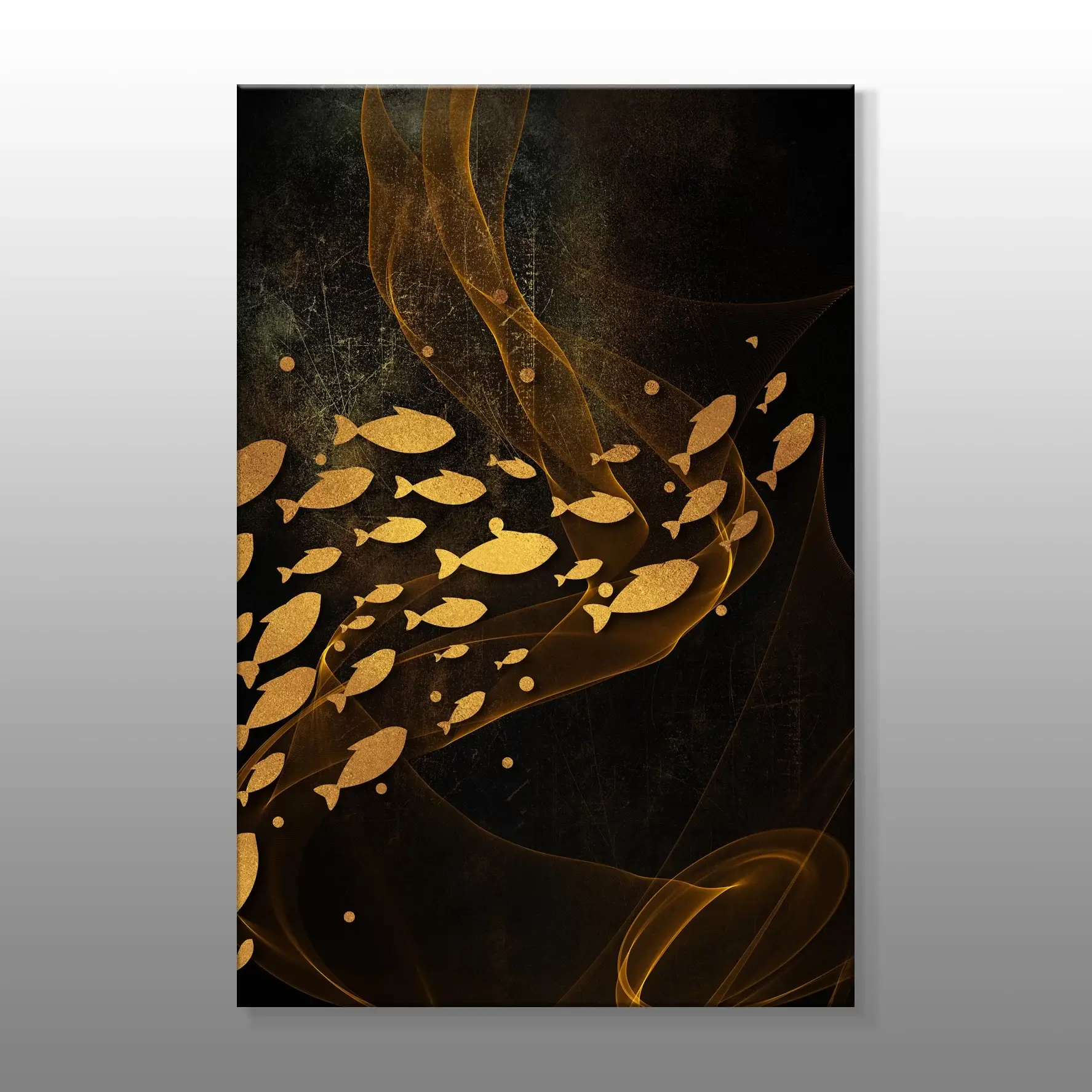 Kahverengi Duman Ve Balıklar Soyut Kanvas Baskı Tablo