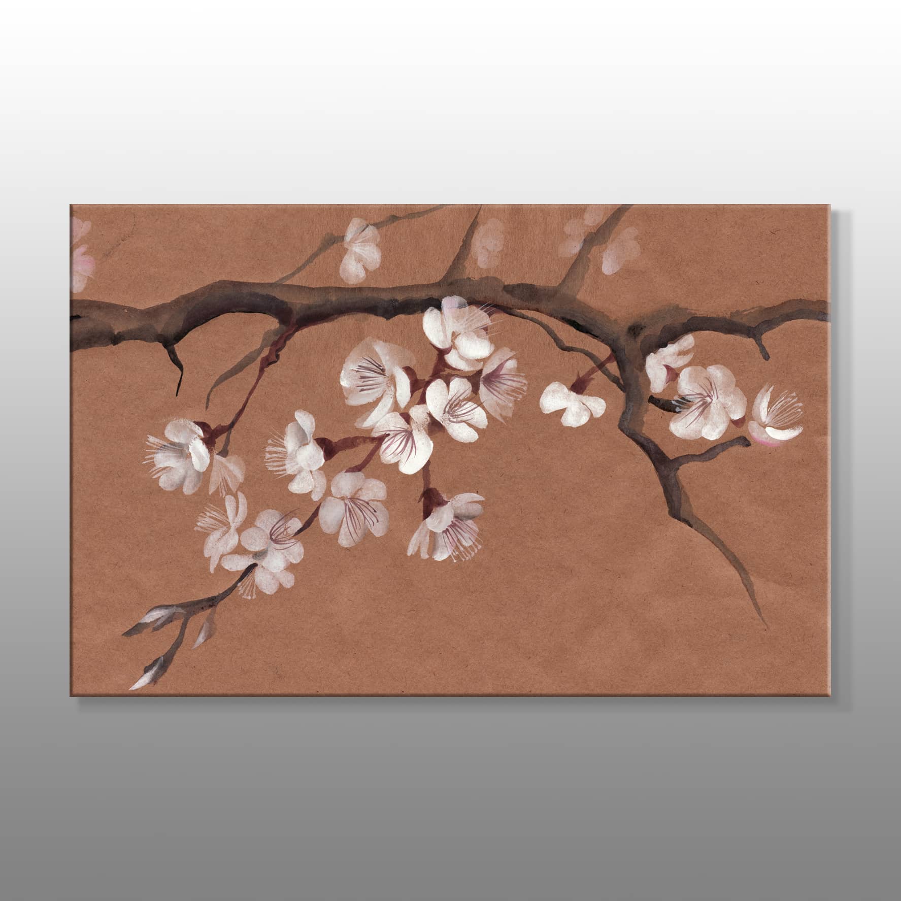 Kahverengi Duvar ve Beyaz Çiçekli Ağaç Kanvas Baskı Tablo