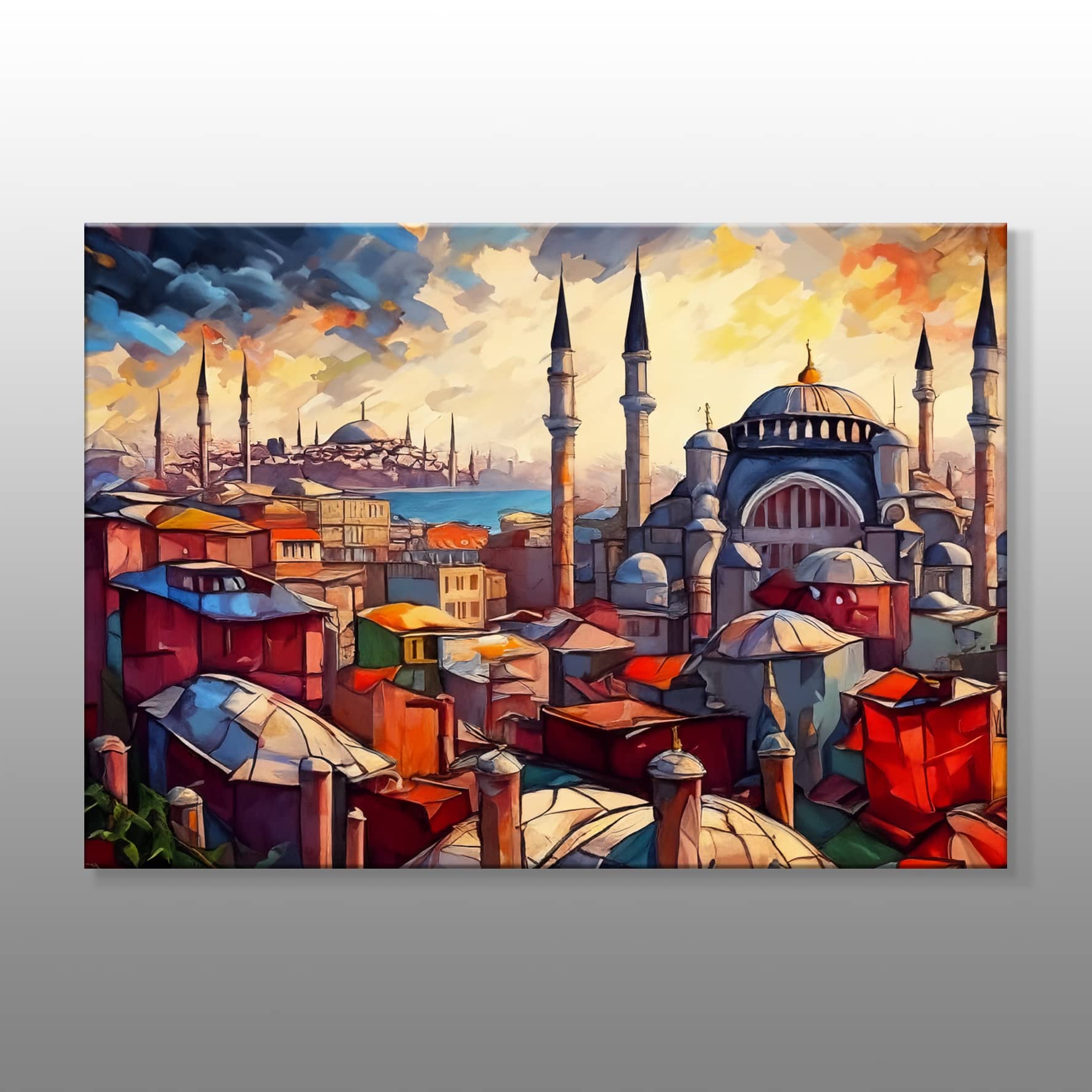 Karikatüristik İstanbul Kanvas Baskı Tablo