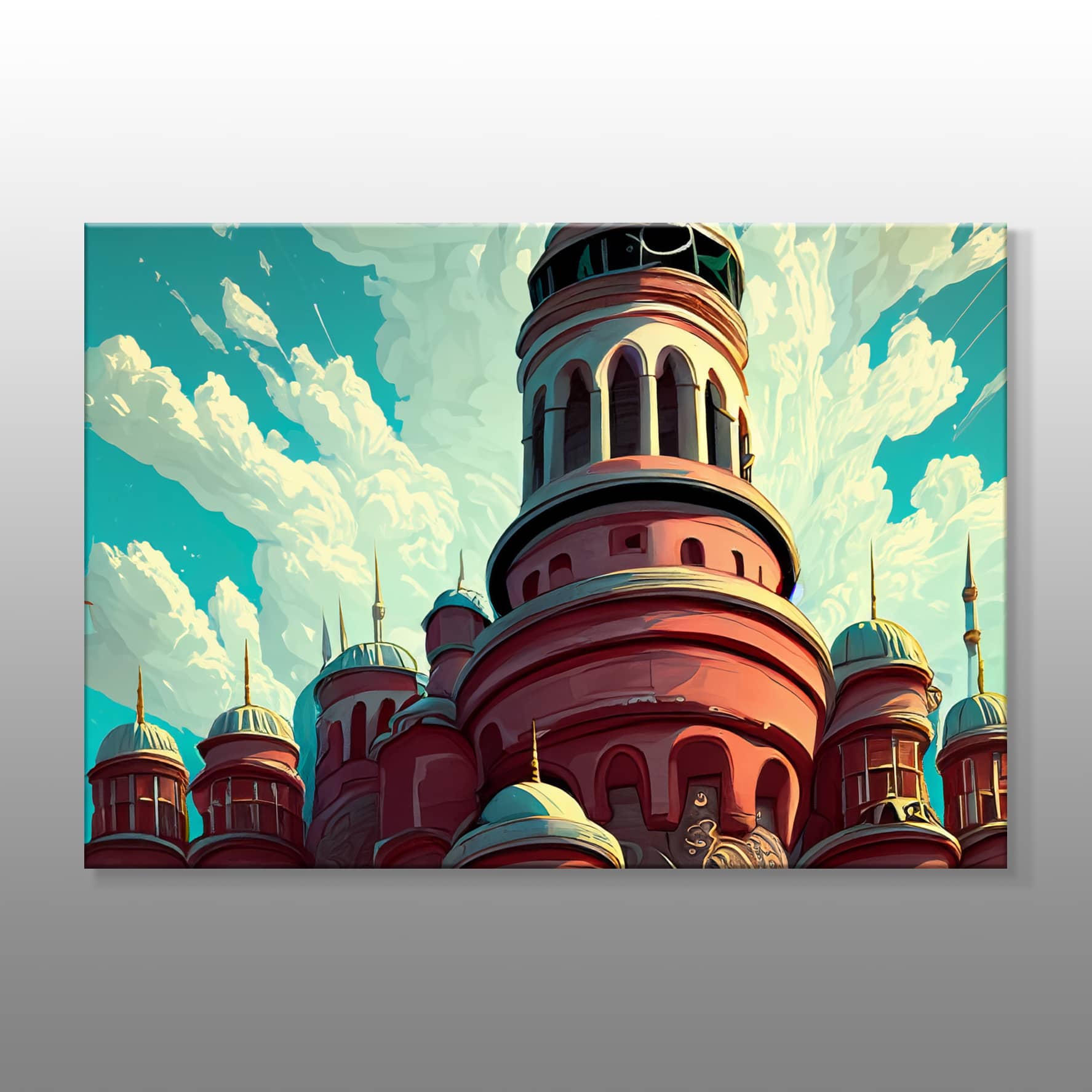 Karikatüristik Kuleler Kanvas Baskı Tablo
