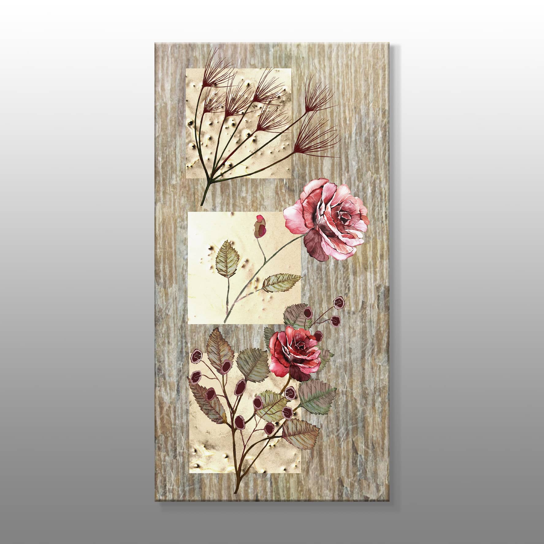Kırmızı Güller ve Yapraklar Kanvas Baskı Tablo