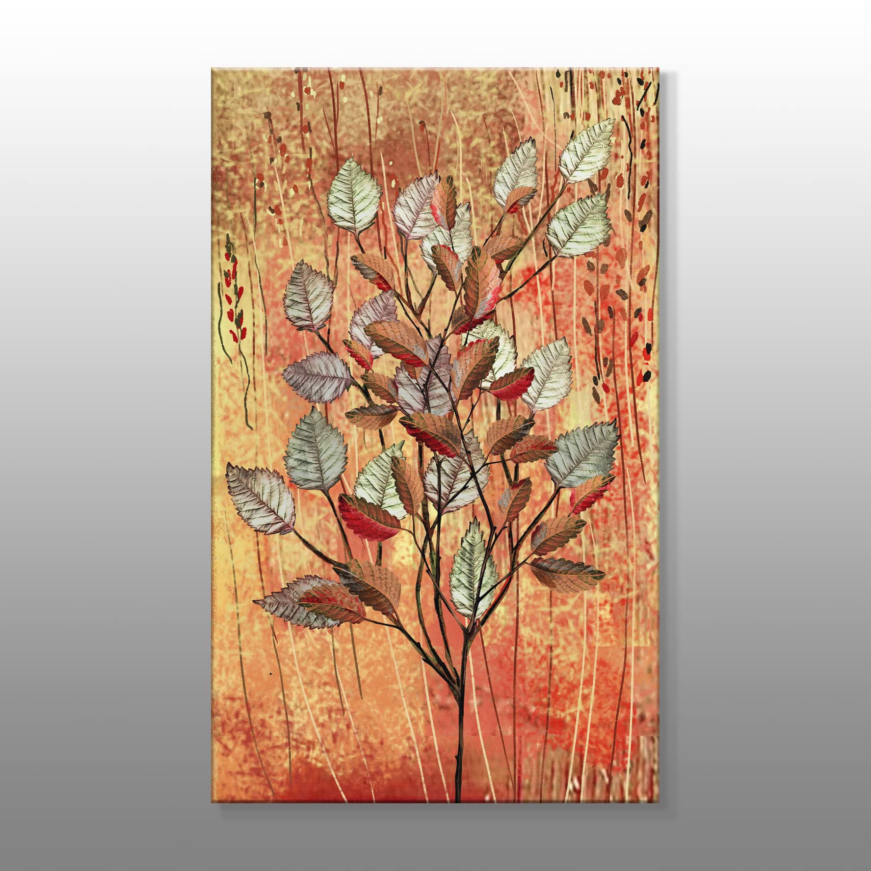 Kırmızı Gümüş Yapraklı Bitki Kanvas Baskı Tablo