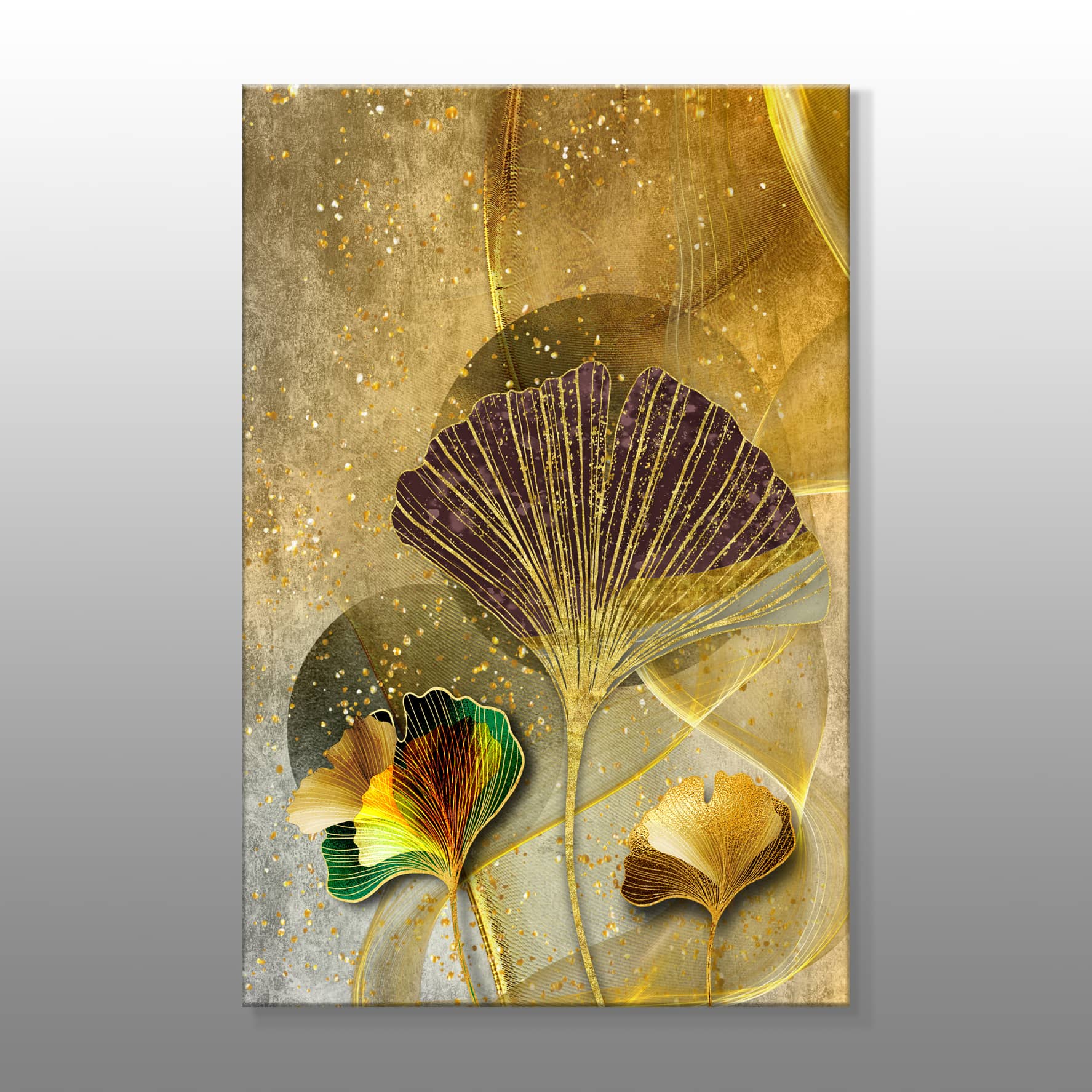 Mabet Yapragi ve Altın Tozlar – Doğanın Zarafeti ve Lüksün Birleşimi Kanvas Tablo