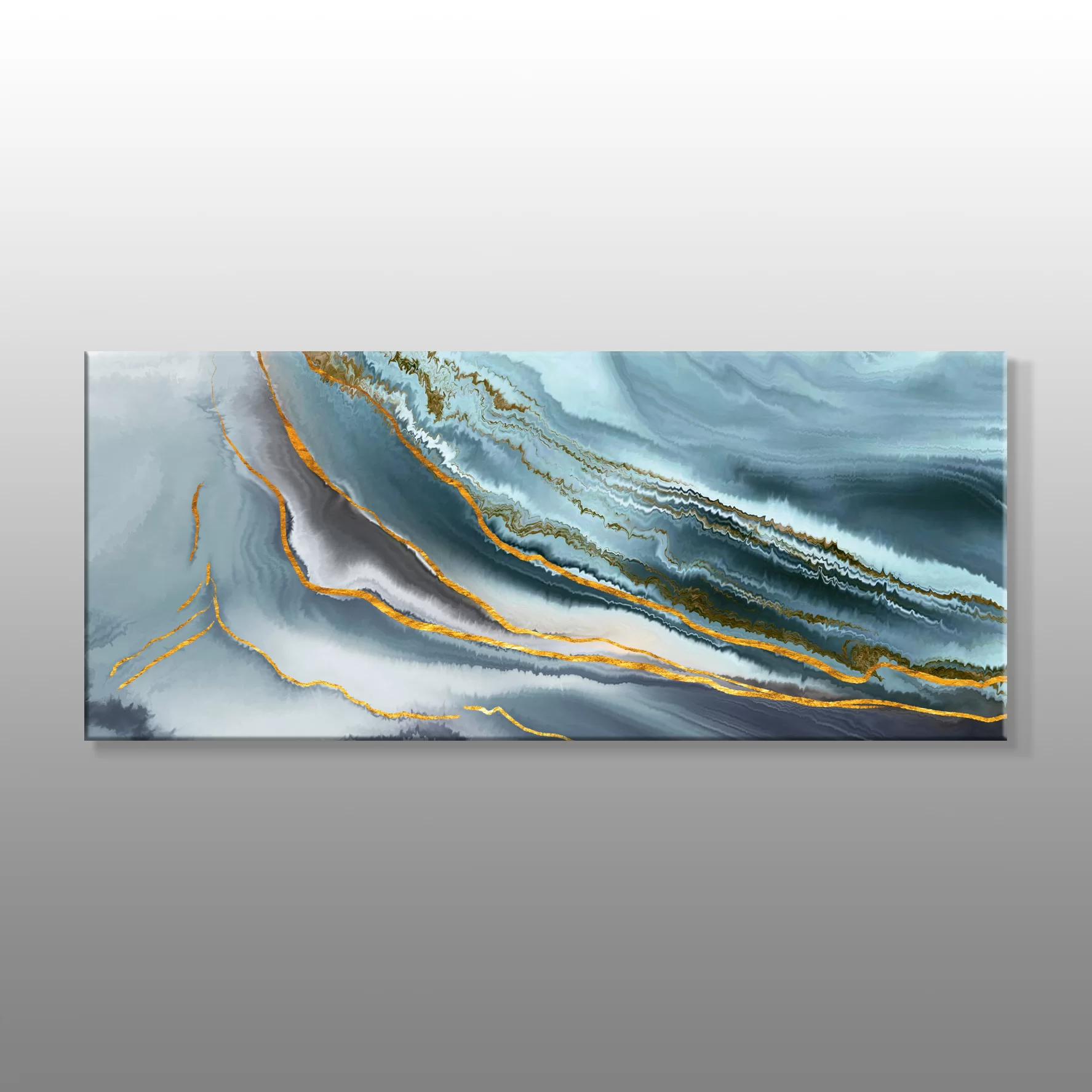 Mavi-Altın Dalgalar Soyut Kanvas Baskı Tablo