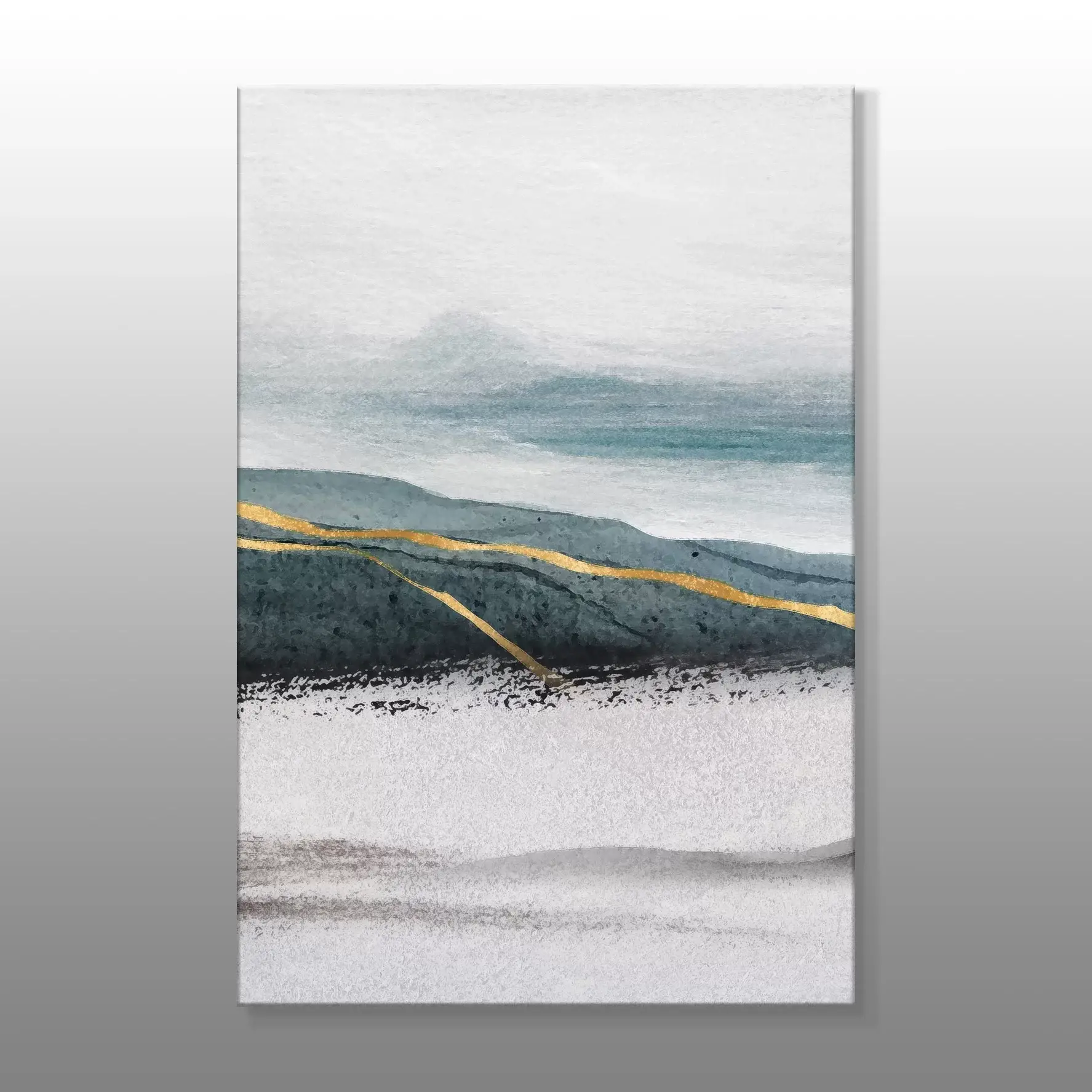 Mavi-Altın Işıltılı Kıyı Soyut Kanvas Baskı Tablo
