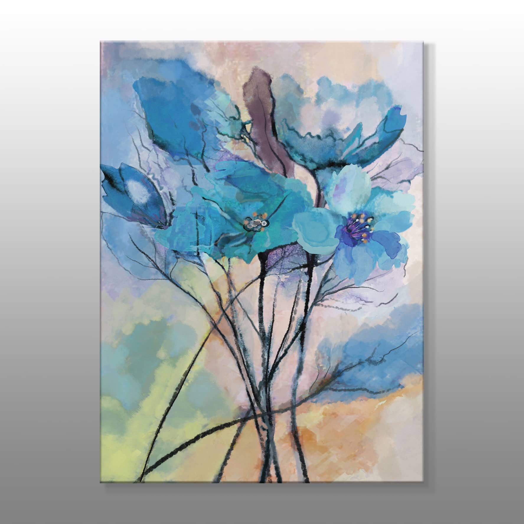 Mavi Çiçekler Kanvas Baskı Tablo