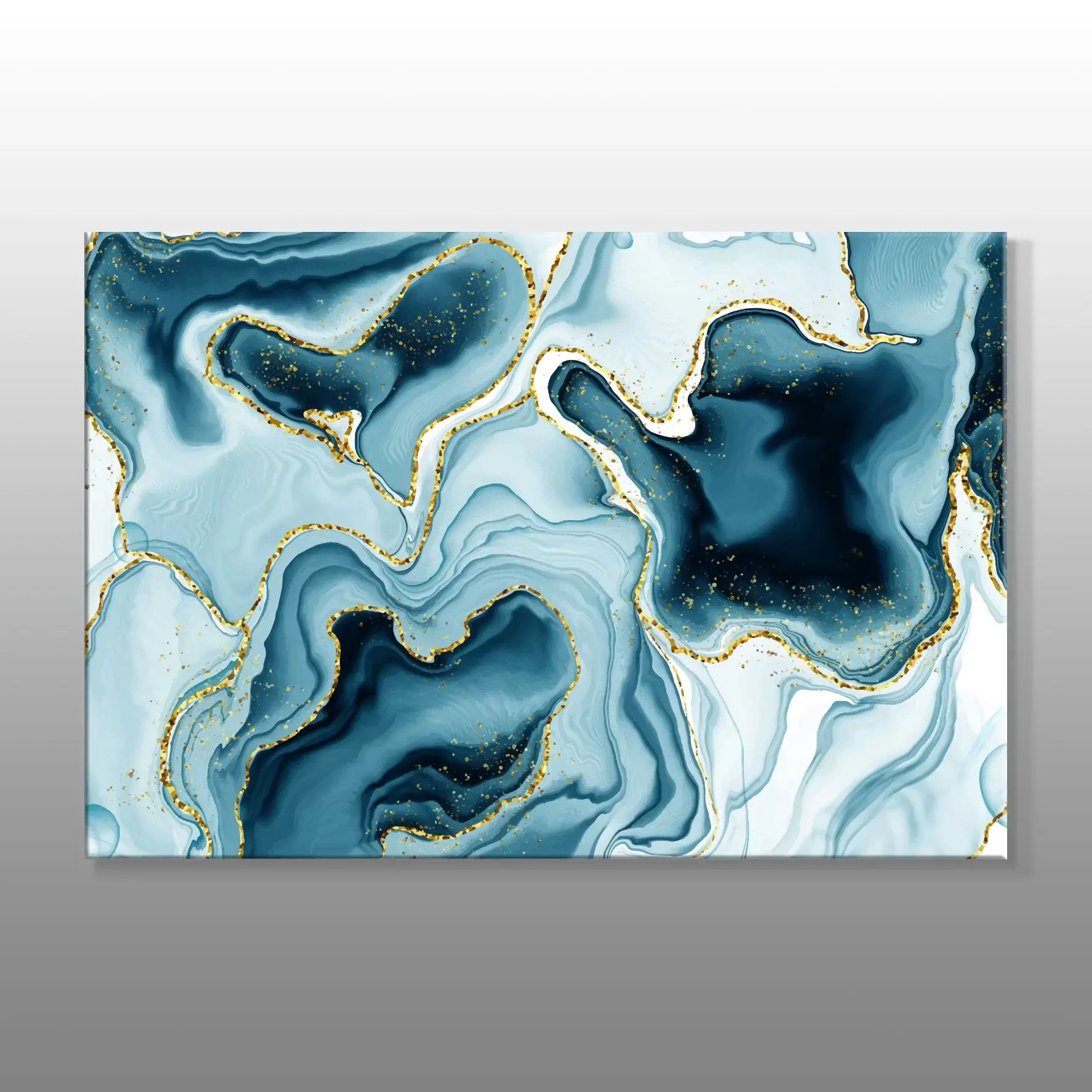 Mavi Ve Altın Birleşimi Dalgalar Soyut Kanvas Baskı Tablo